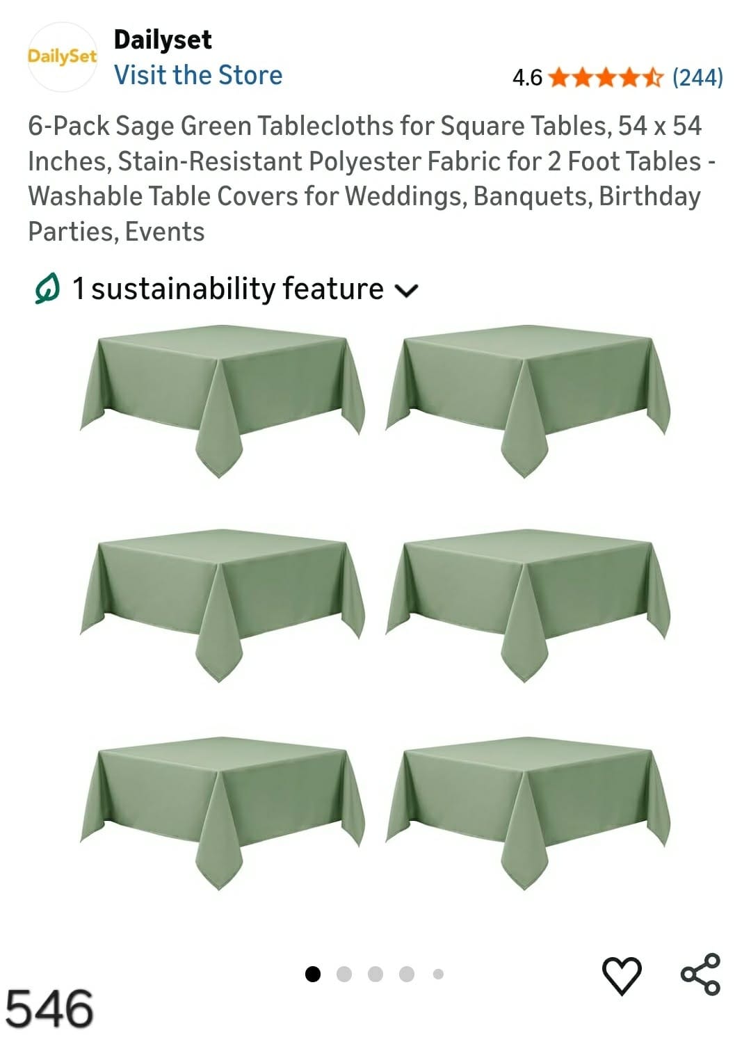 Fitable 6 Pack Sage Green Rectangle Table Clothes. Lv546