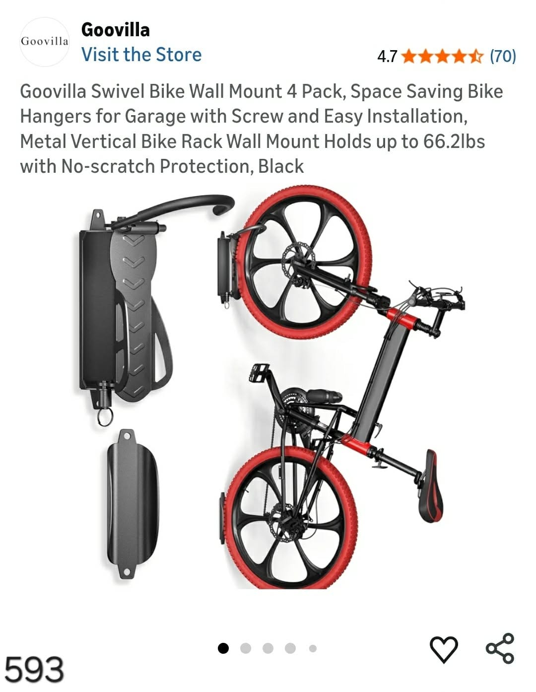 Goovilla Swivel Bike Wall Mount 2 Pack. Lv593