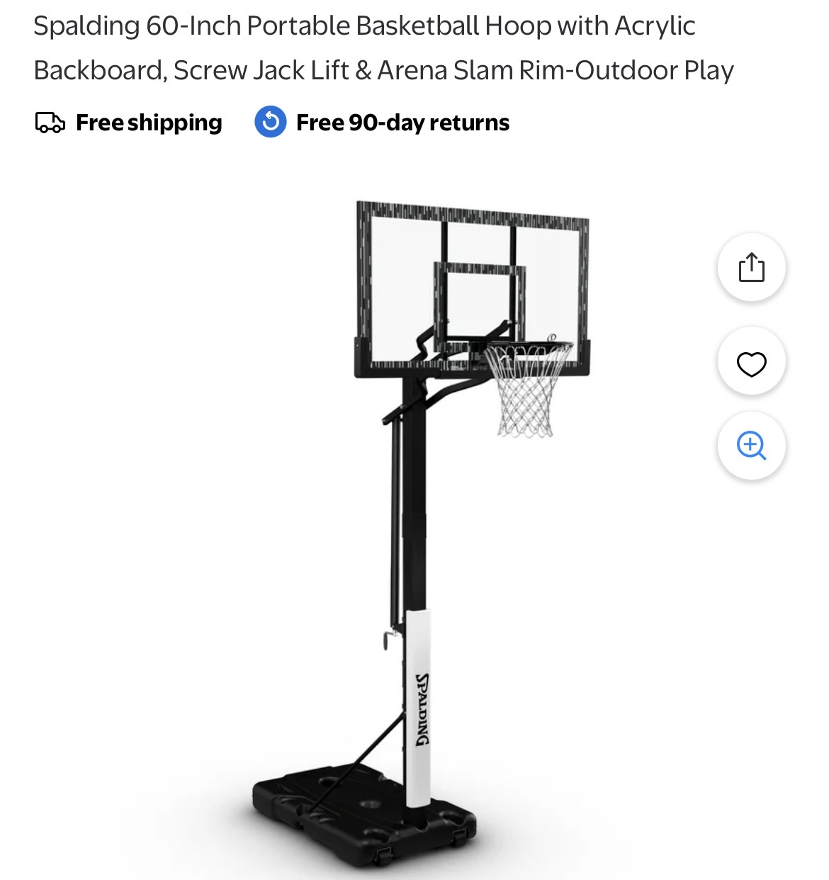 Spalding 60-Inch Portable Basketball Hoop with Acrylic Backboard #I82