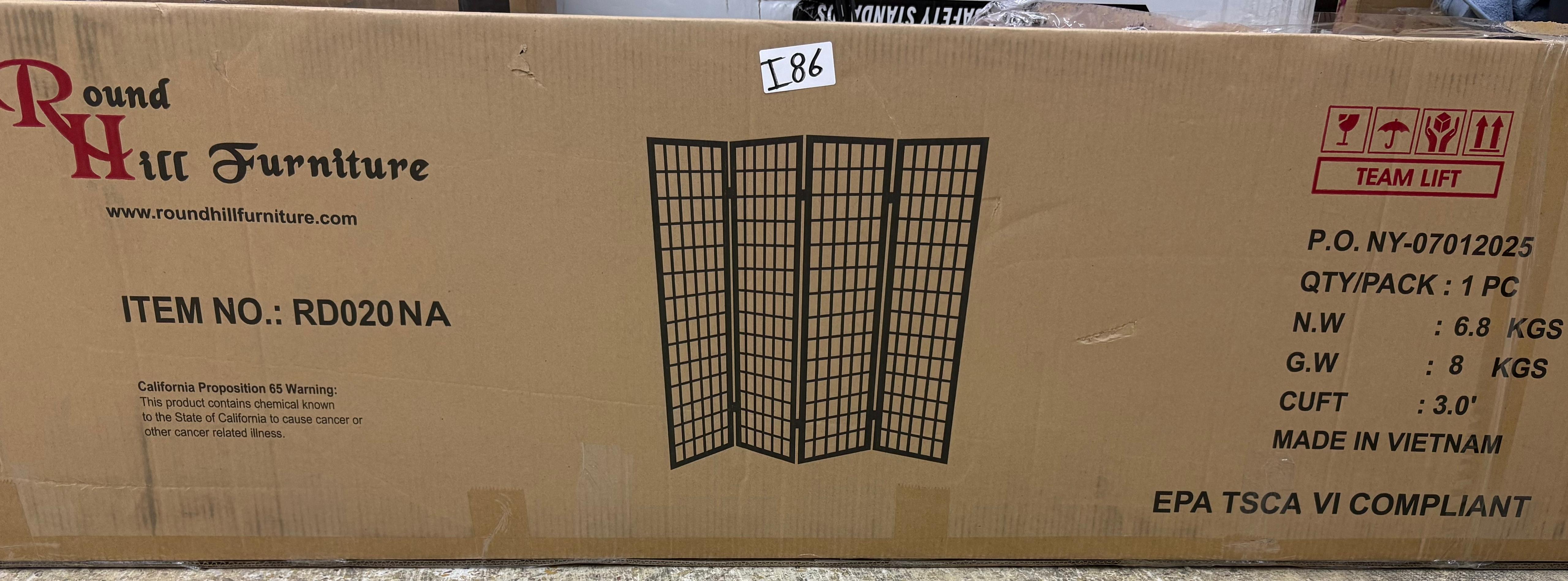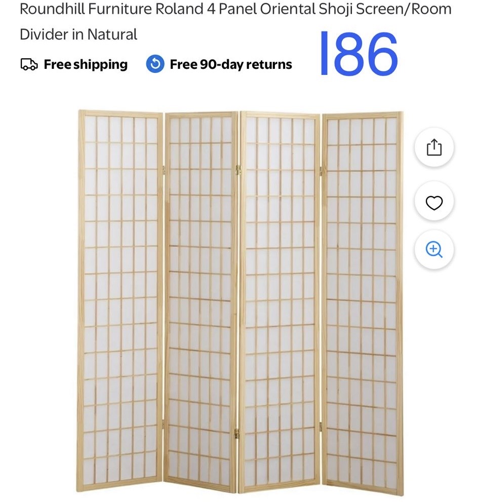 Roundhill Furniture Roland 4 Panel Oriental Shoji Screen/Room Divider in Natural #I86