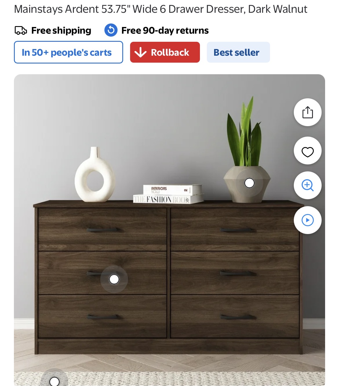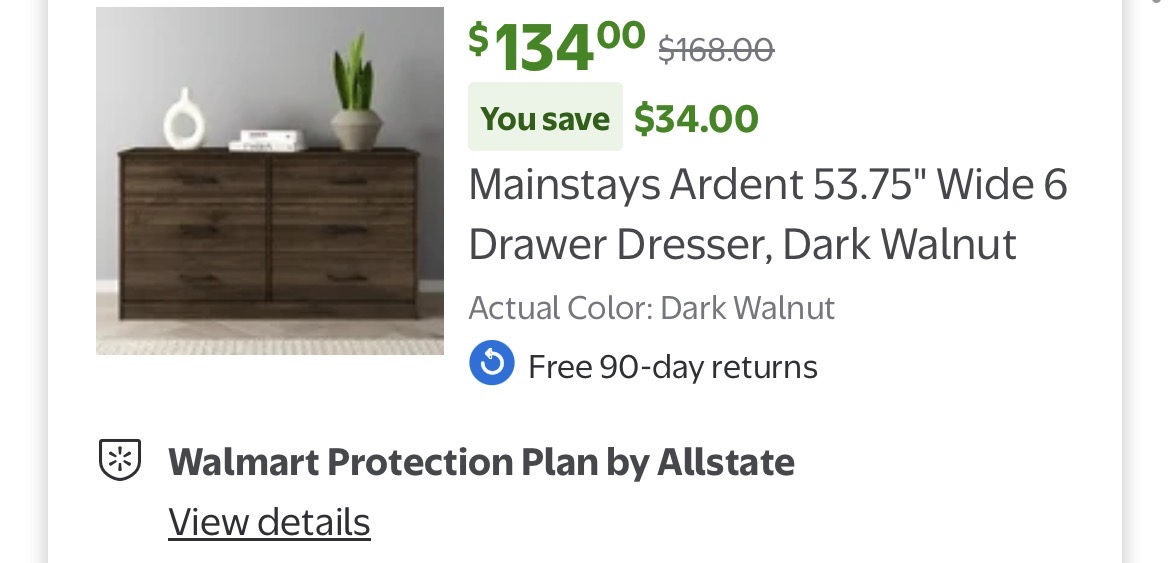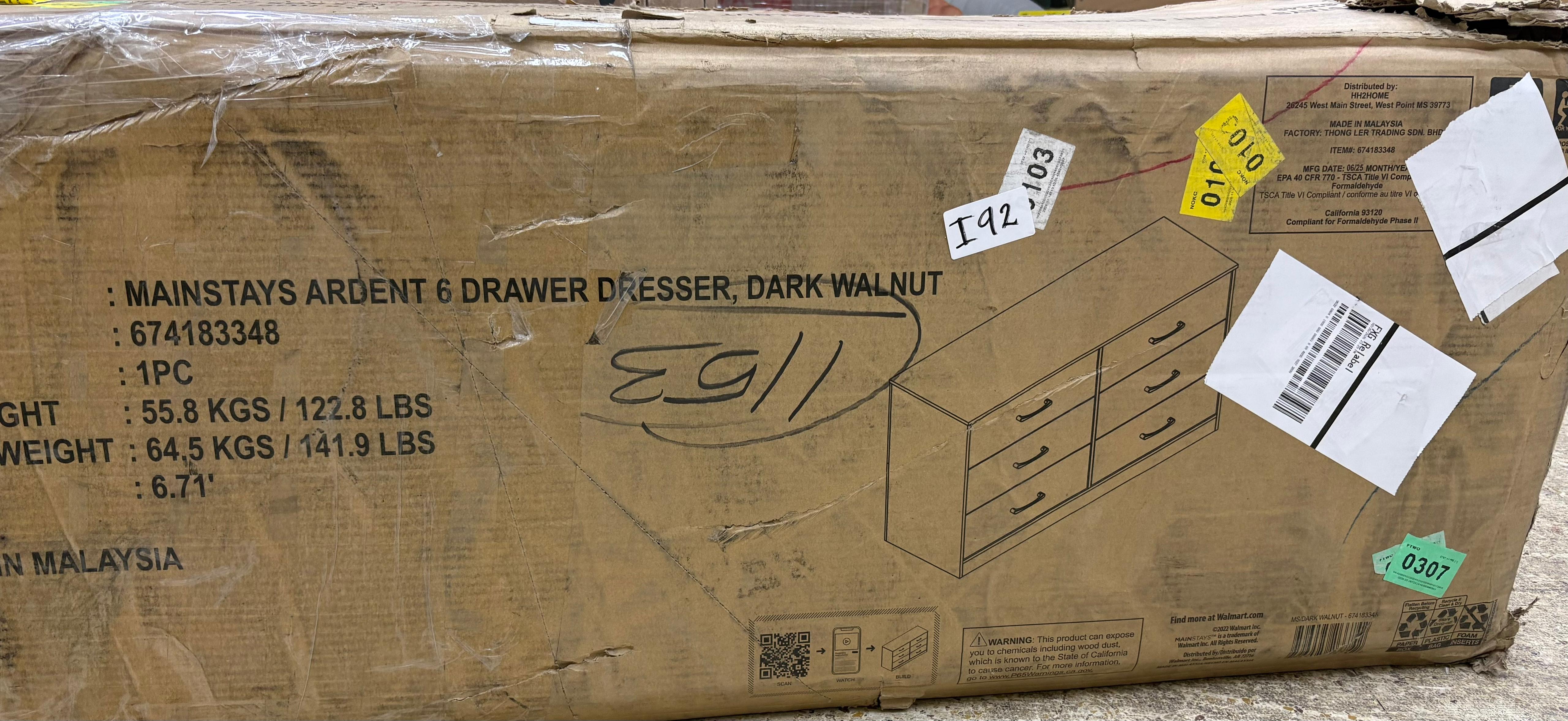 Mainstays Ardent 53.75" Wide 6 Drawer Dresser #I92