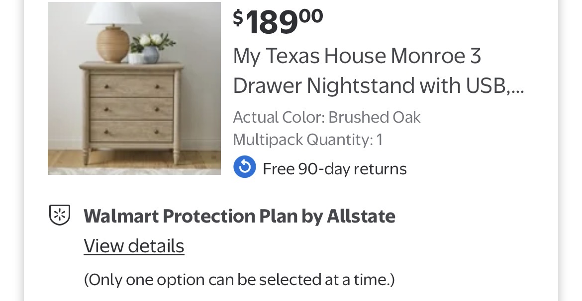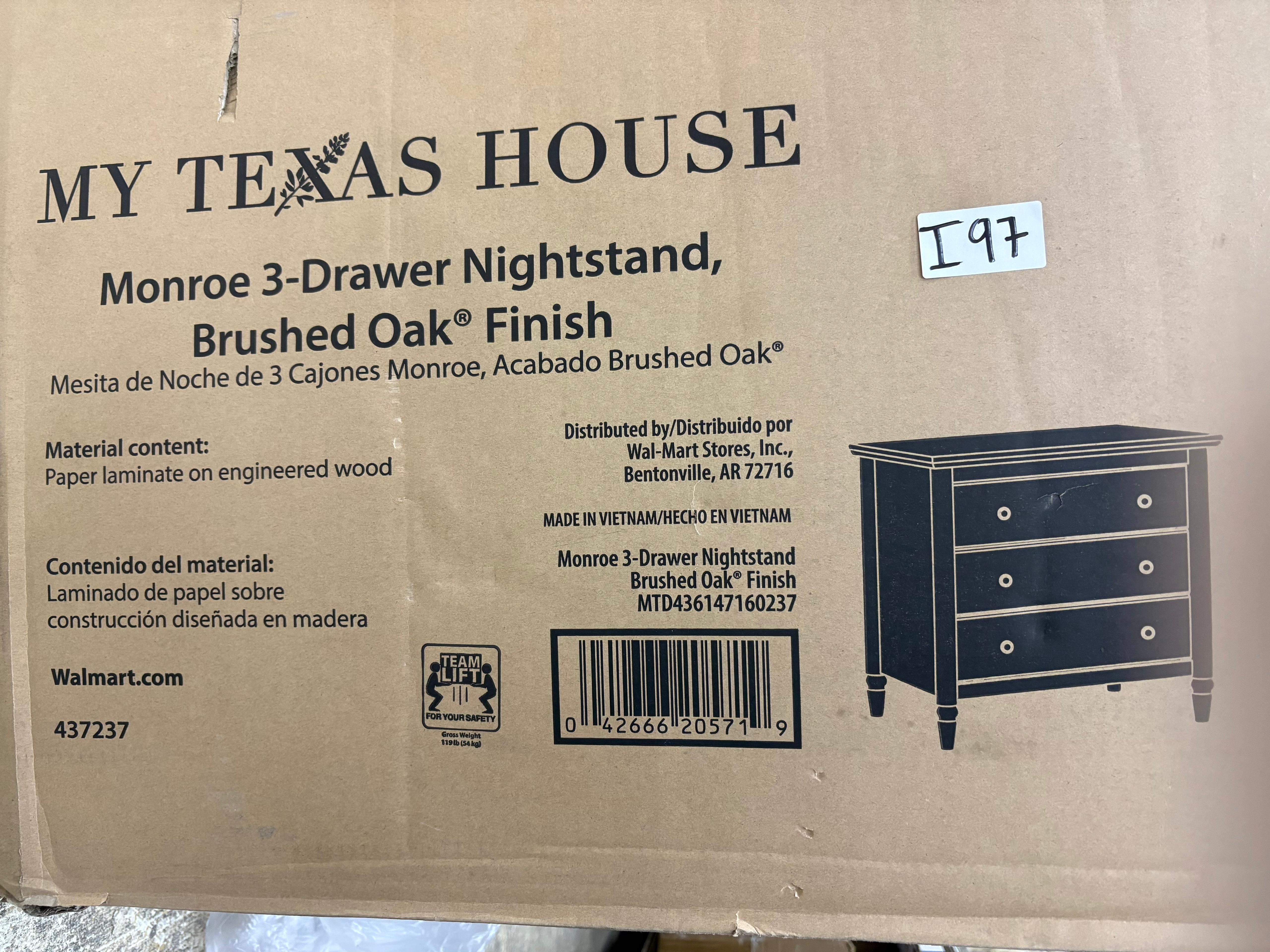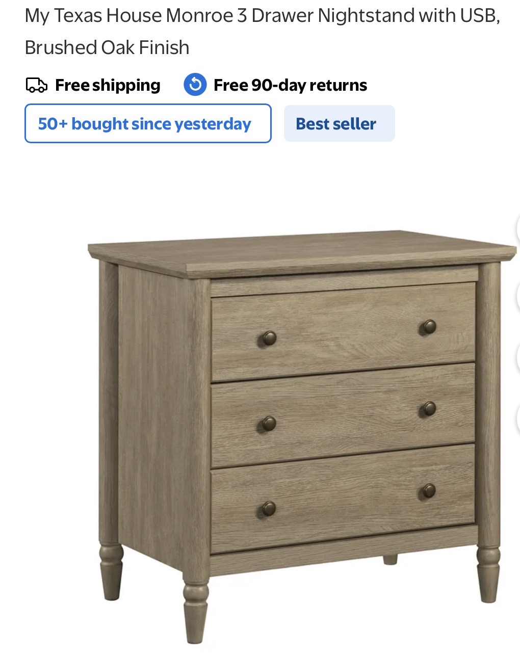 My Texas House Monroe 3 Drawer Nightstand with USB, Brushed Oak Finish #I97