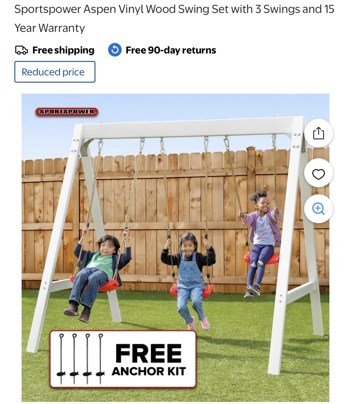 Sportspower Aspen Vinyl Wood Swing Set with 3 Swings and 15 Year Warranty #I100