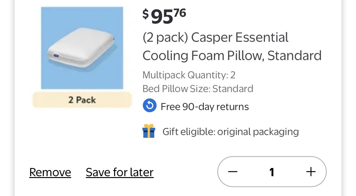 (2 pack) Casper Essential Cooling Foam Pillow, Standard #I16