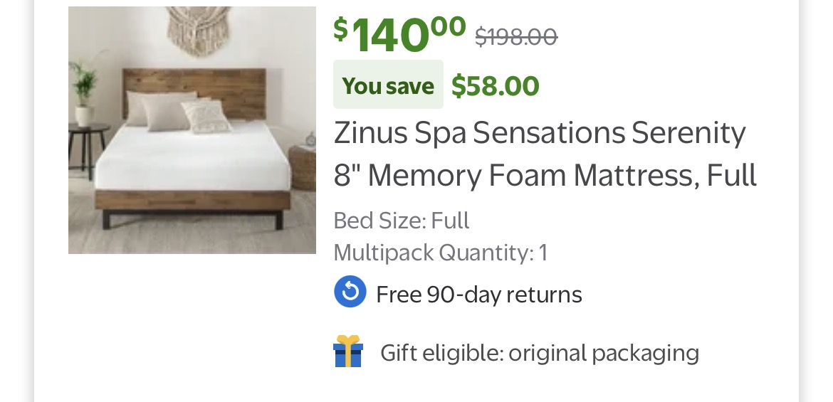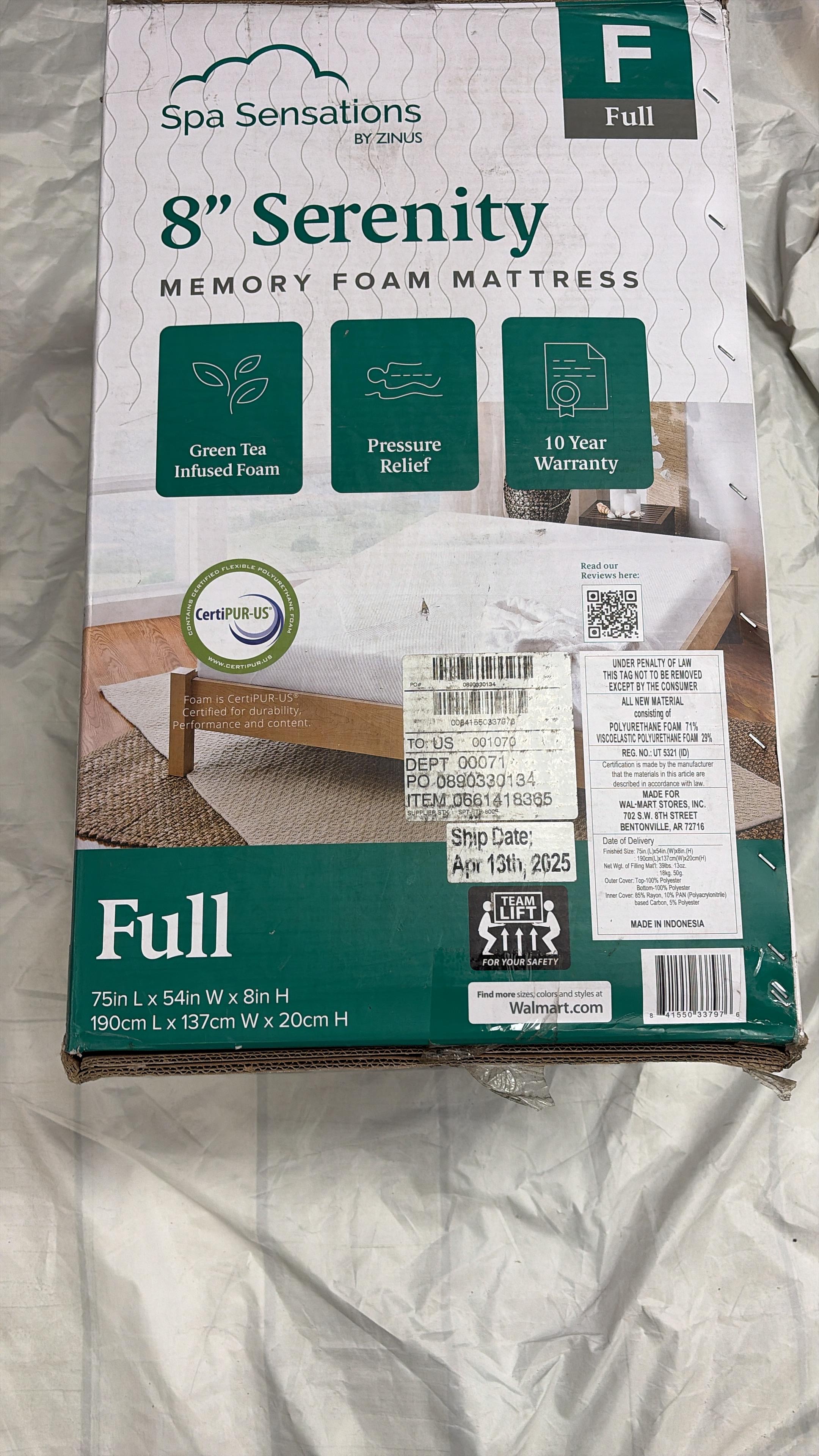 Spa Sensations Serenity 8" Memory Foam Mattress #D18