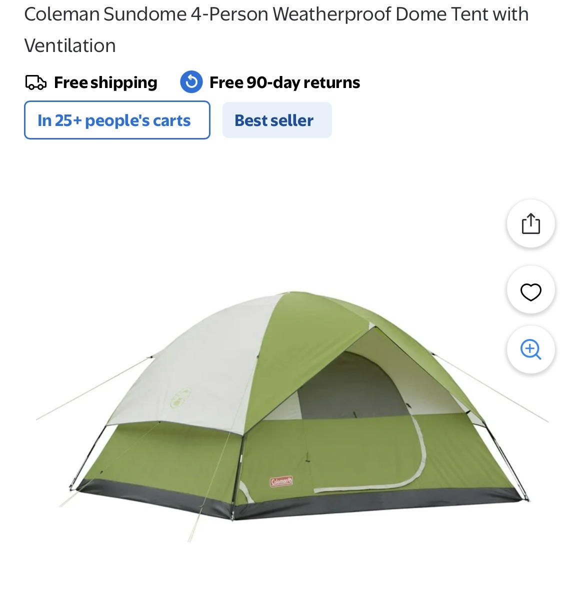 Coleman Sundome 4-Person Weatherproof Dome Tent with Ventilation #D28