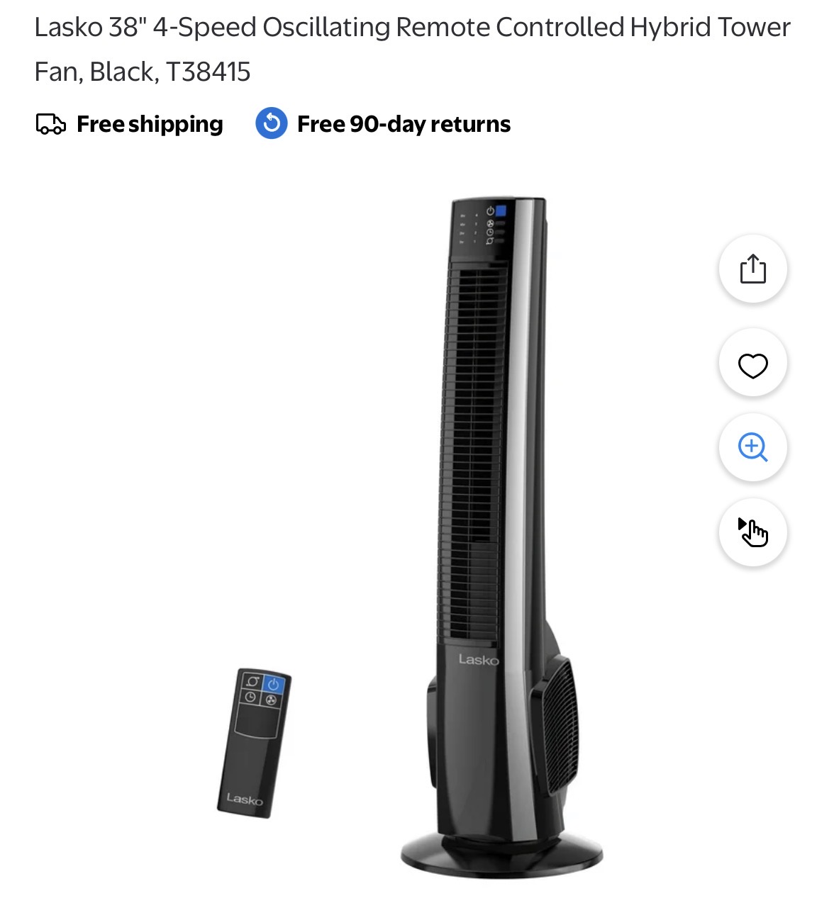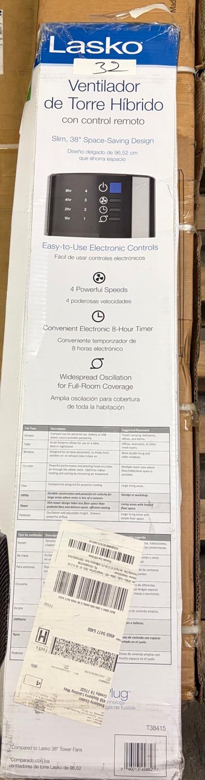 Lasko 38" 4-Speed Oscillating Remote Controlled Hybrid Tower Fan #D32