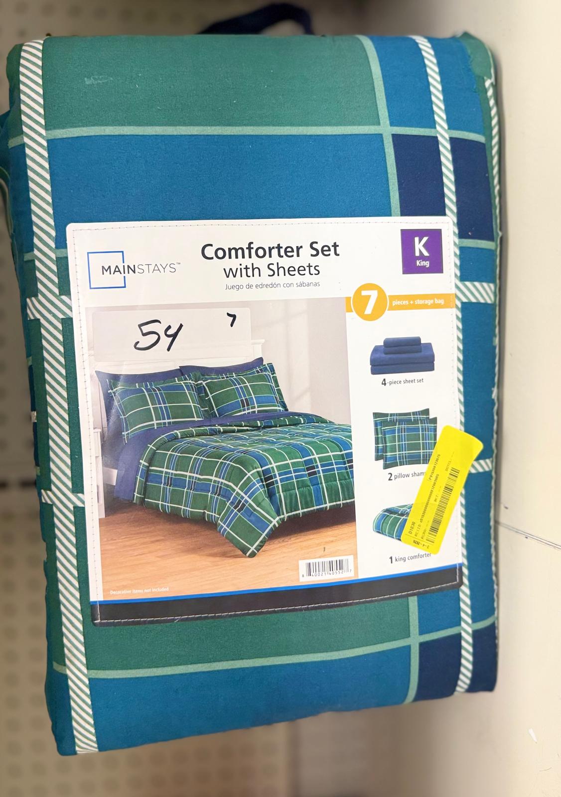 7 Piece, King, Green and Navy Plaid. 54