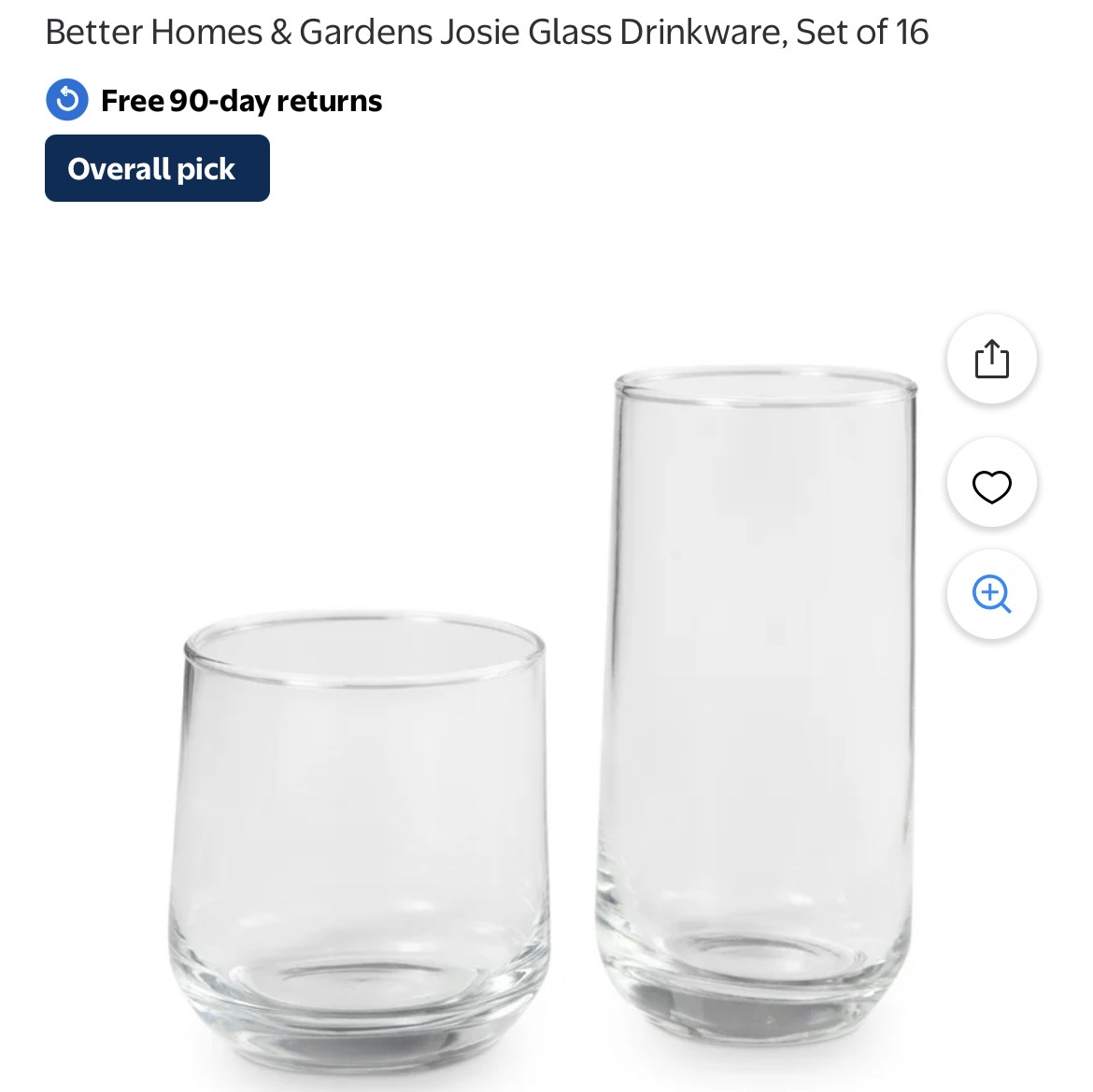 Better Homes & Gardens Josie Glass Drinkware, Set of 16 #D54