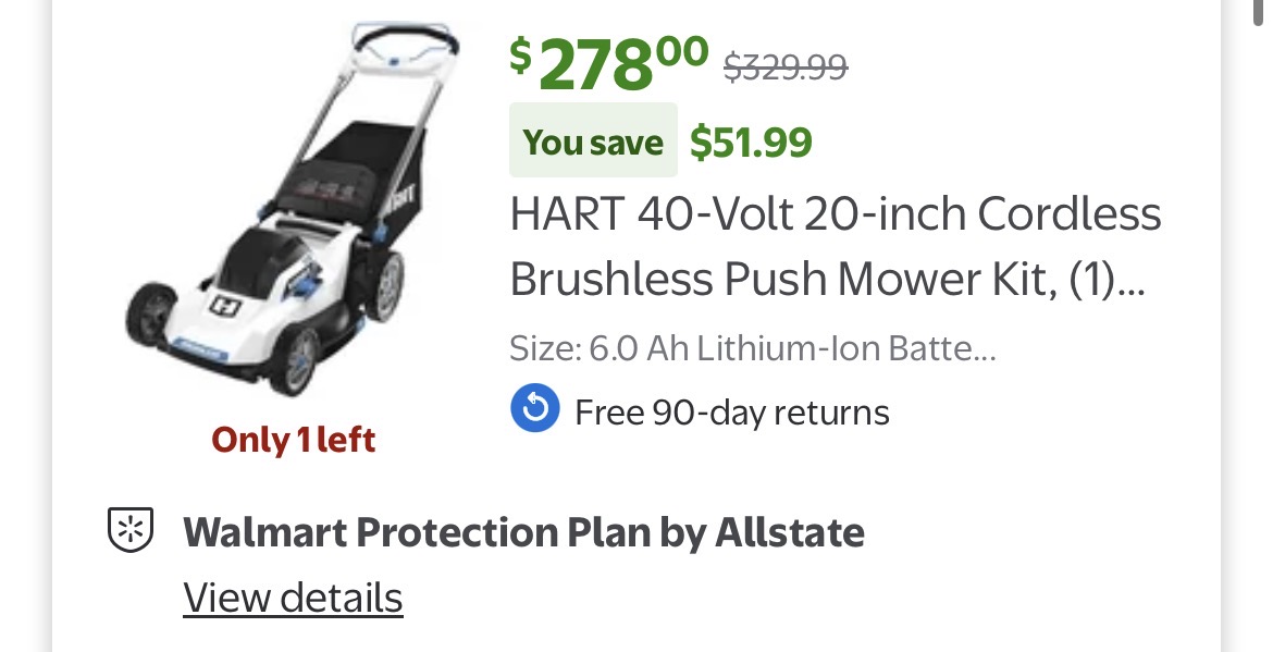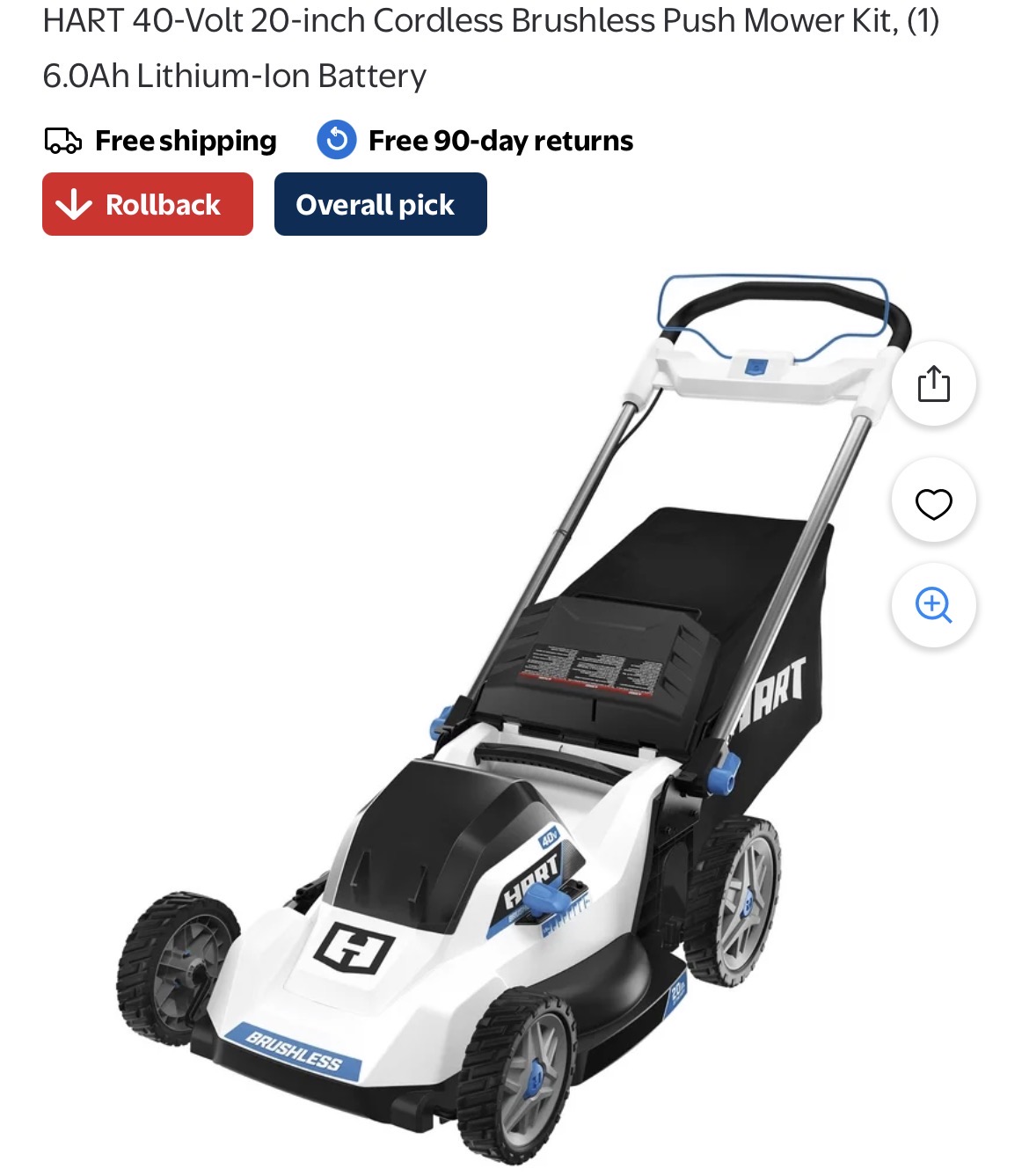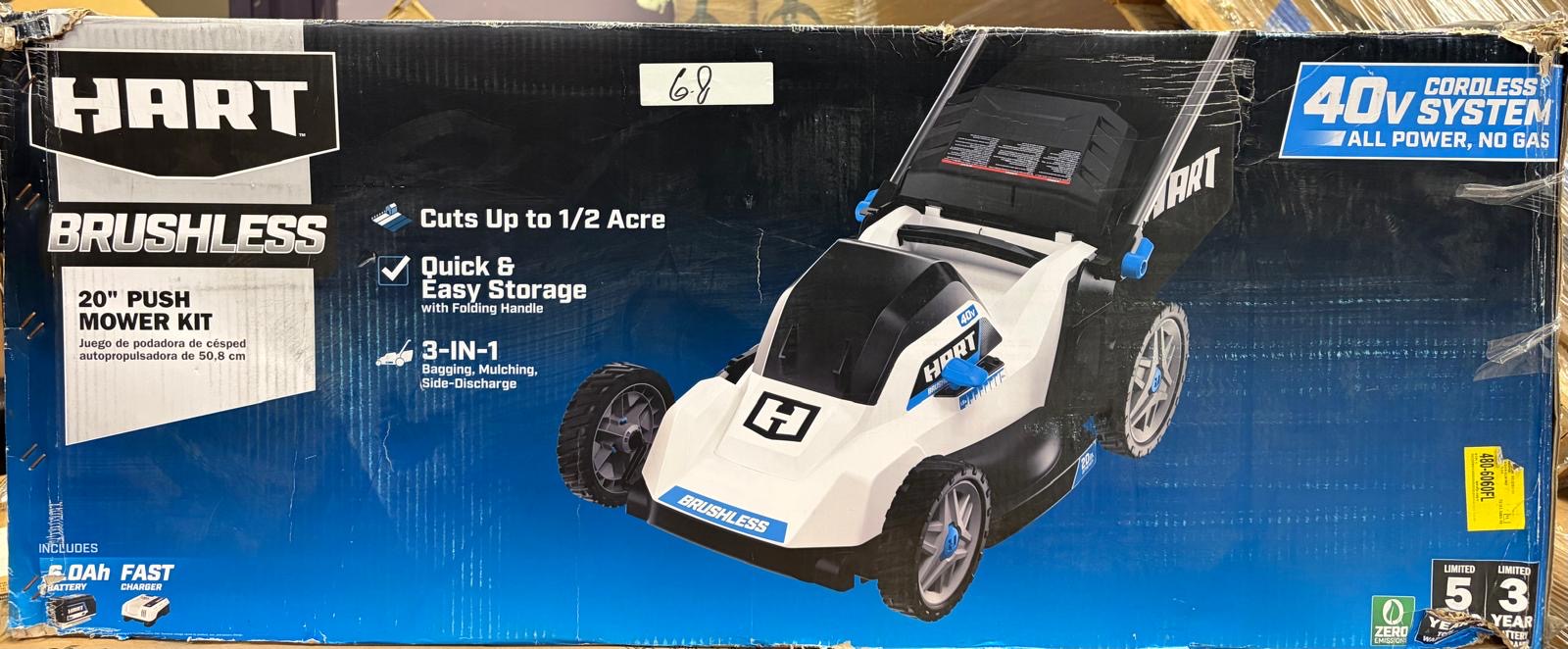 HART 40-Volt 20-inch Cordless Brushless Push Mower Kit #D68
