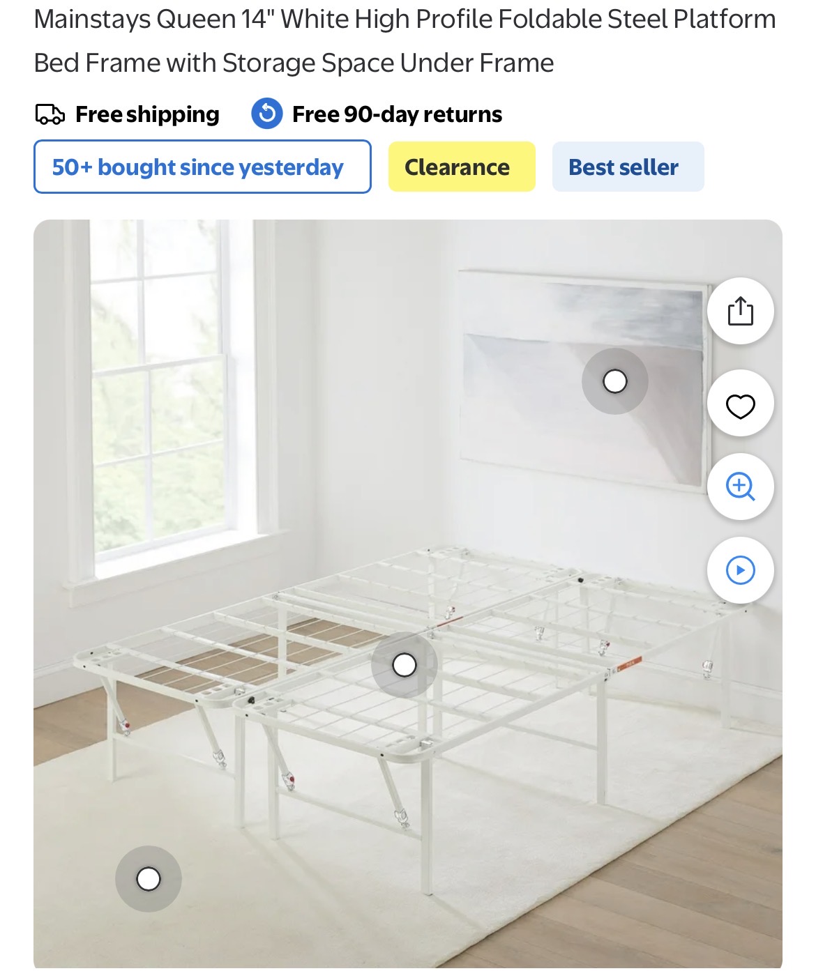 Mainstays Queen 14" White High Profile Foldable Steel Platform #D69