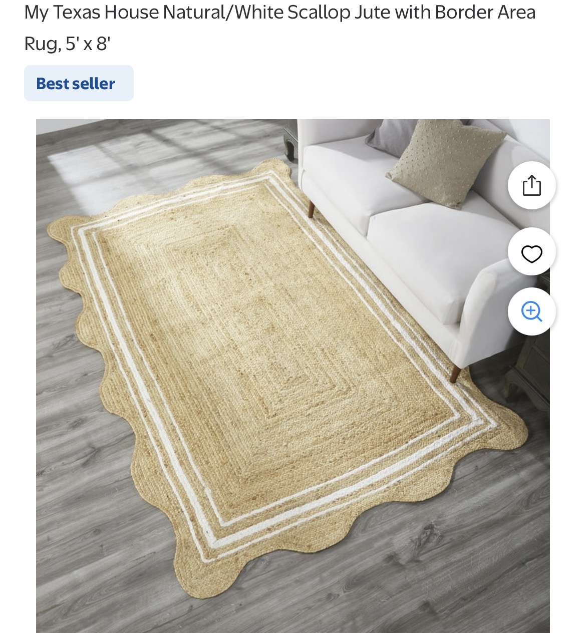 My Texas House Natural/White Scallop Jute with Border Area Rug, 5' x 8' #D75