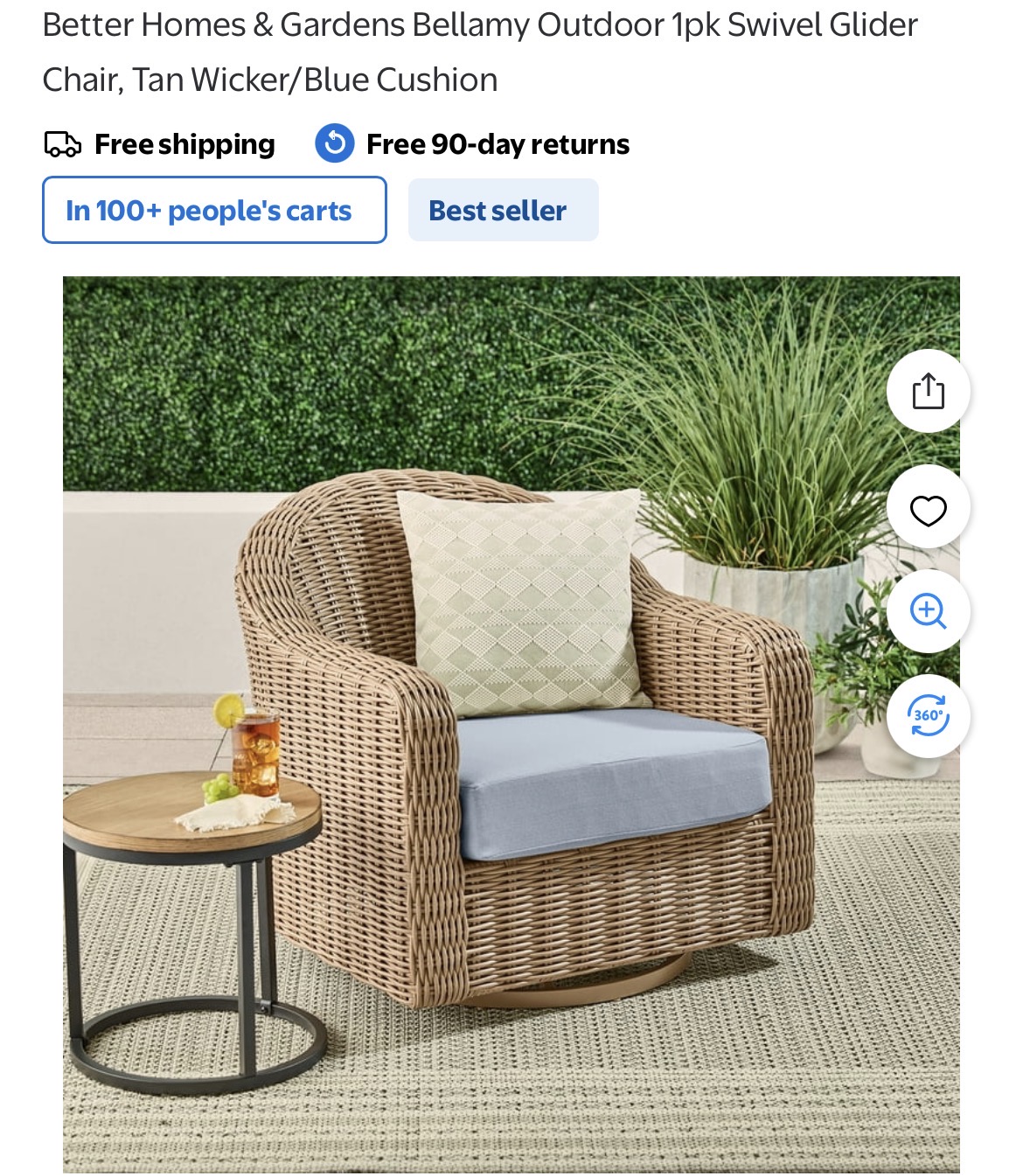 Better Homes & Gardens Bellamy Outdoor 1pk Swivel Glider Chair #D106