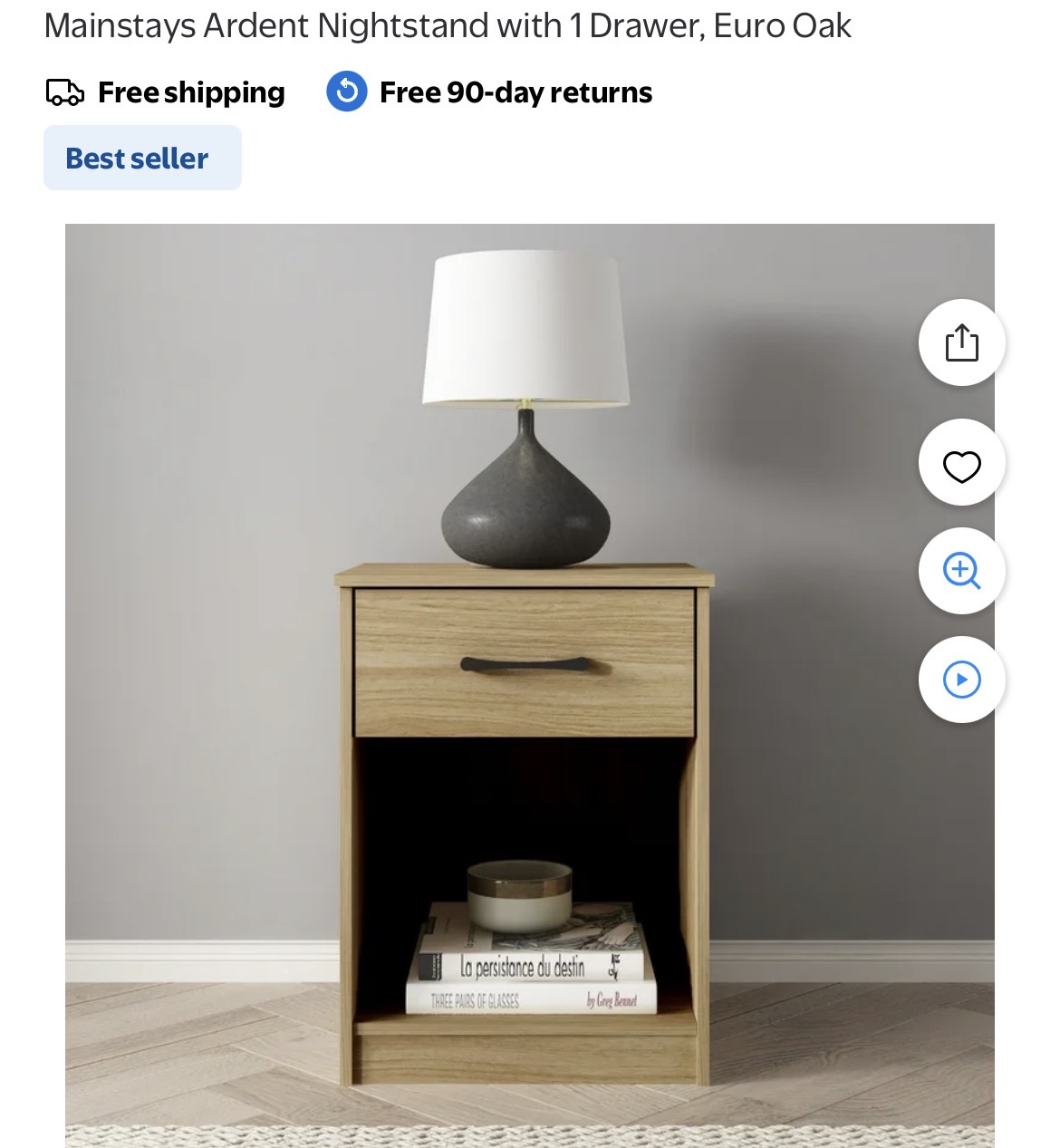 Mainstays Ardent Nightstand with 1 Drawer #D93