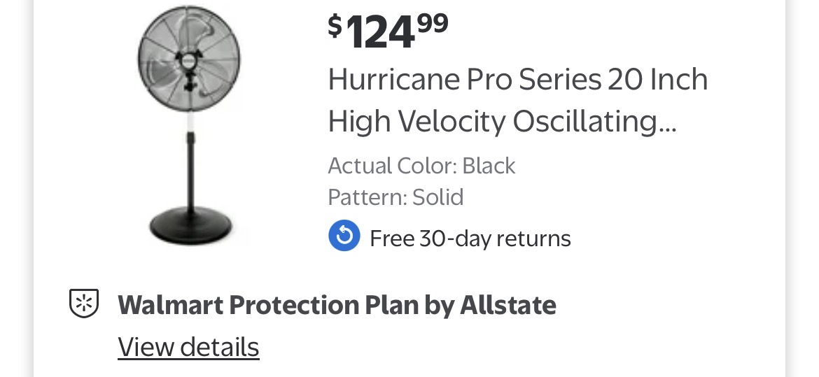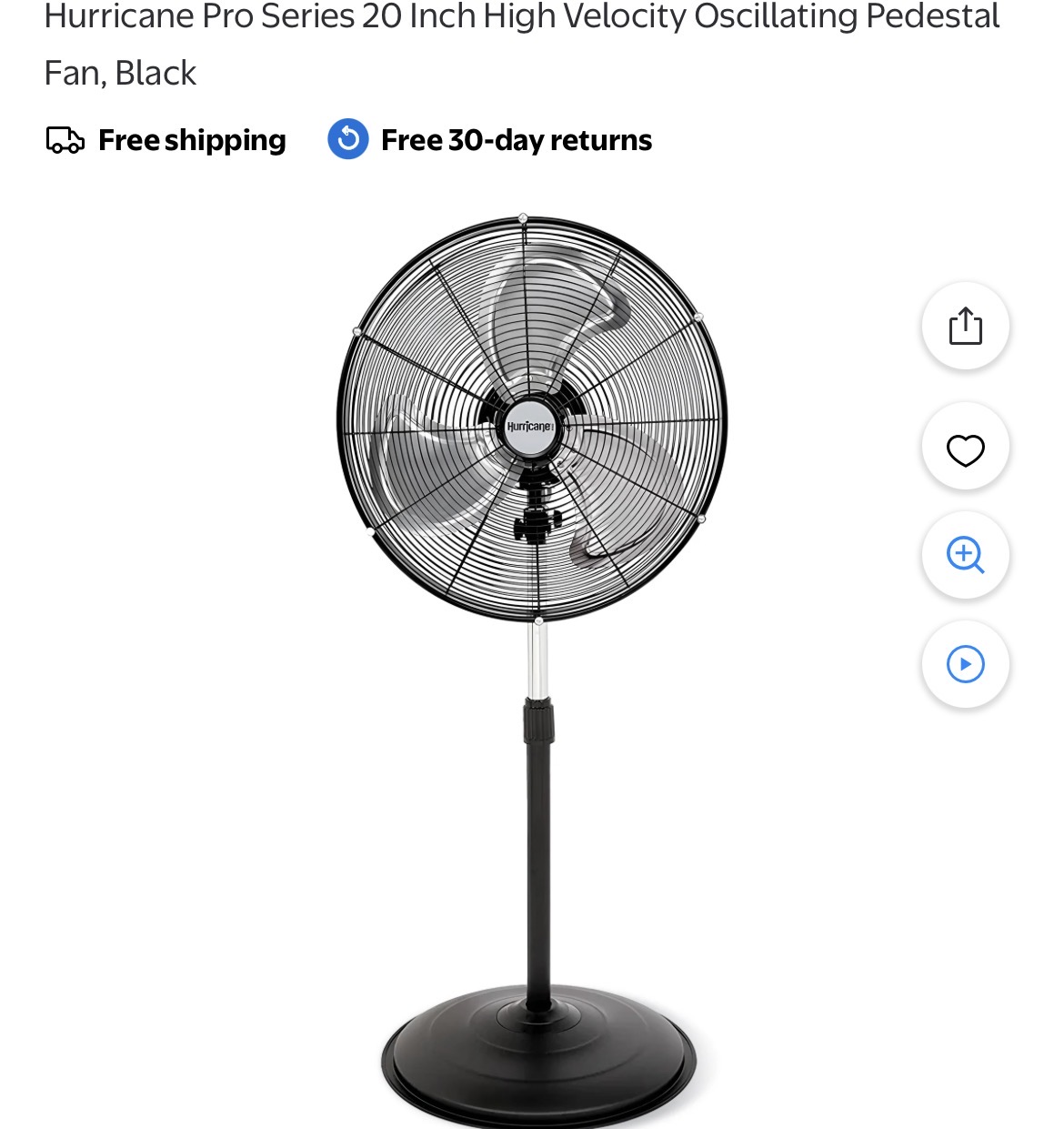 Hurricane Pro Series 20 Inch High Velocity Oscillating Pedestal Fan, Black #D123