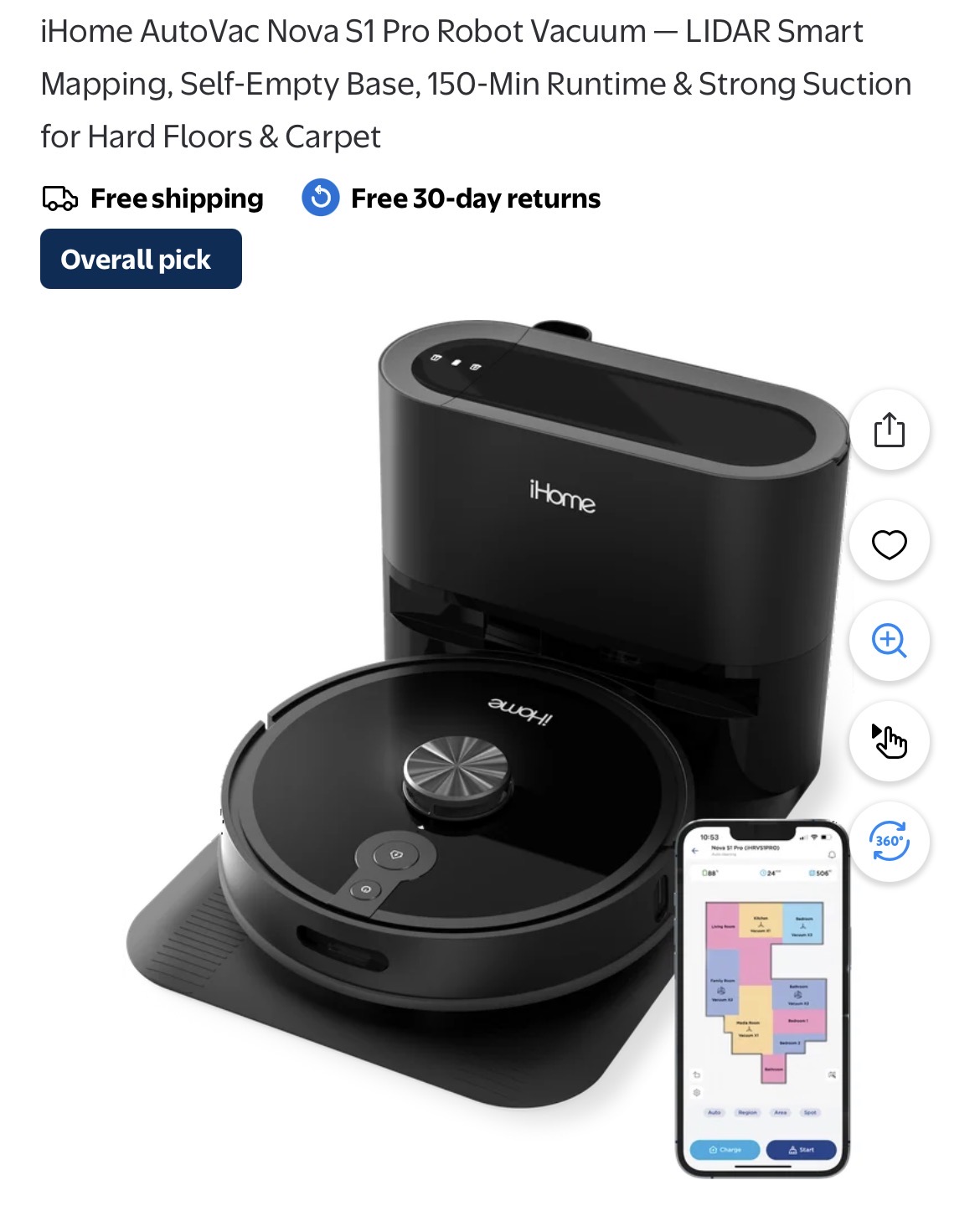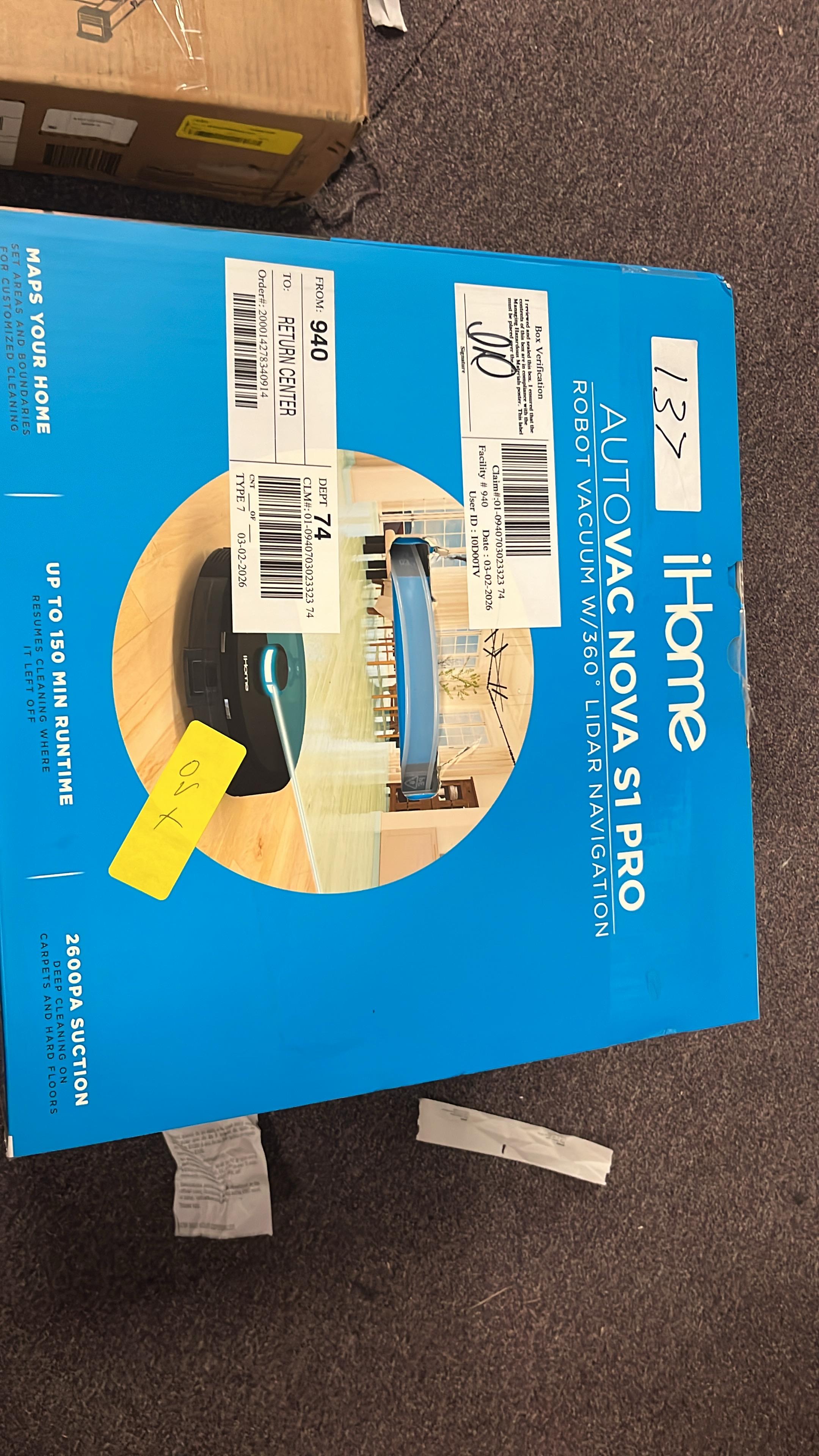 iHome AutoVac Nova S1 Pro Robot Vacuum #D137