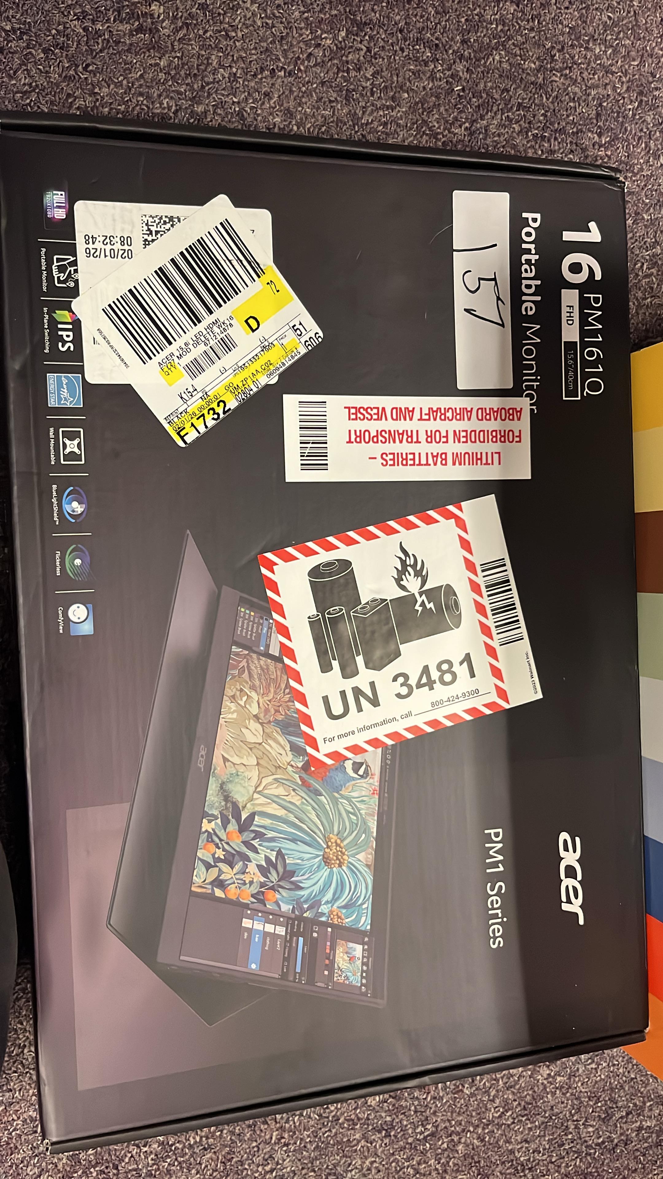Acer 15.6" Portable Monitor, IPS Full HD (1920 x 1080), 60Hz, Black #D157