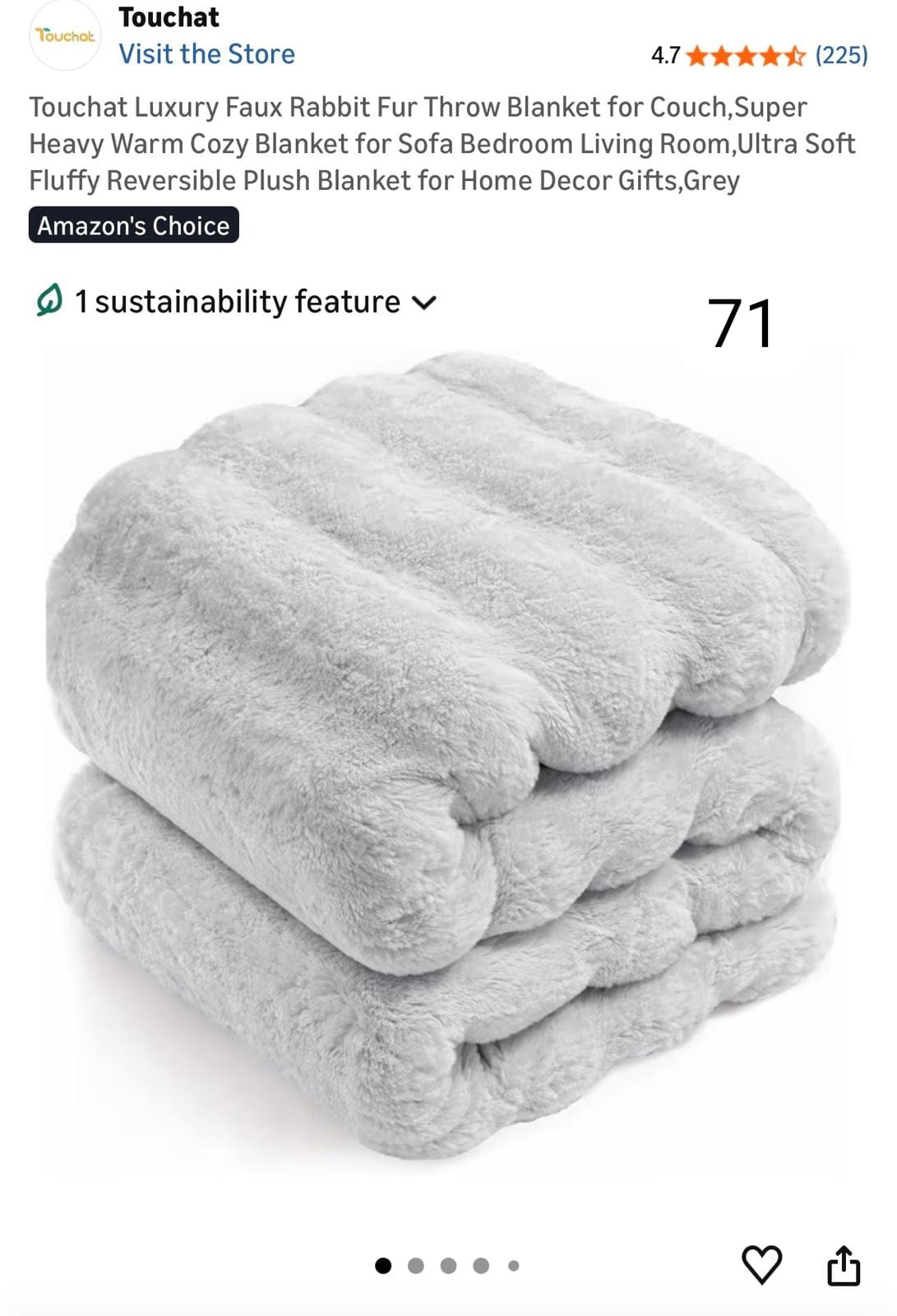 Touchat Luxury Faux Rabbit Fur Throw Blanket for Couch. 71