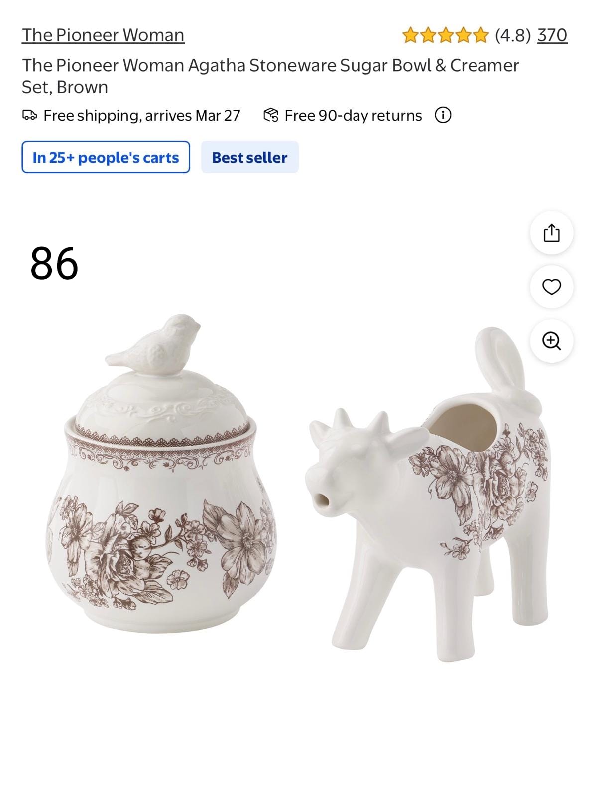 Stoneware Sugar Bowl and Creamer Set. 86