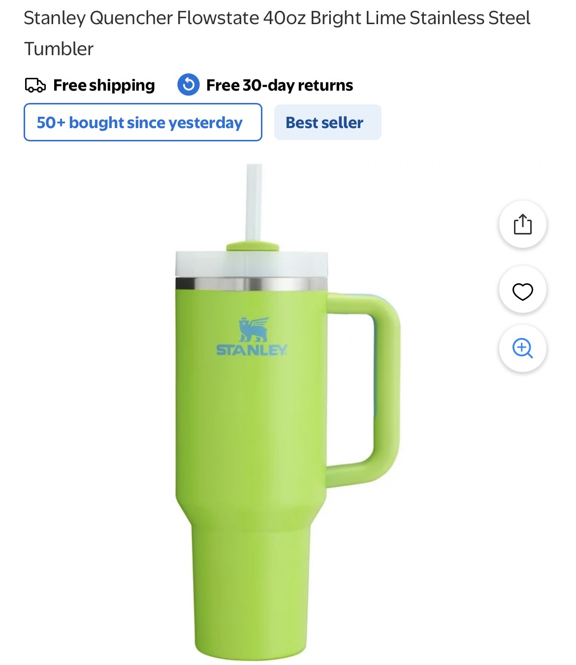 Stanley Quencher Flowstate 40oz Bright Lime Stainless Steel Tumbler #D189