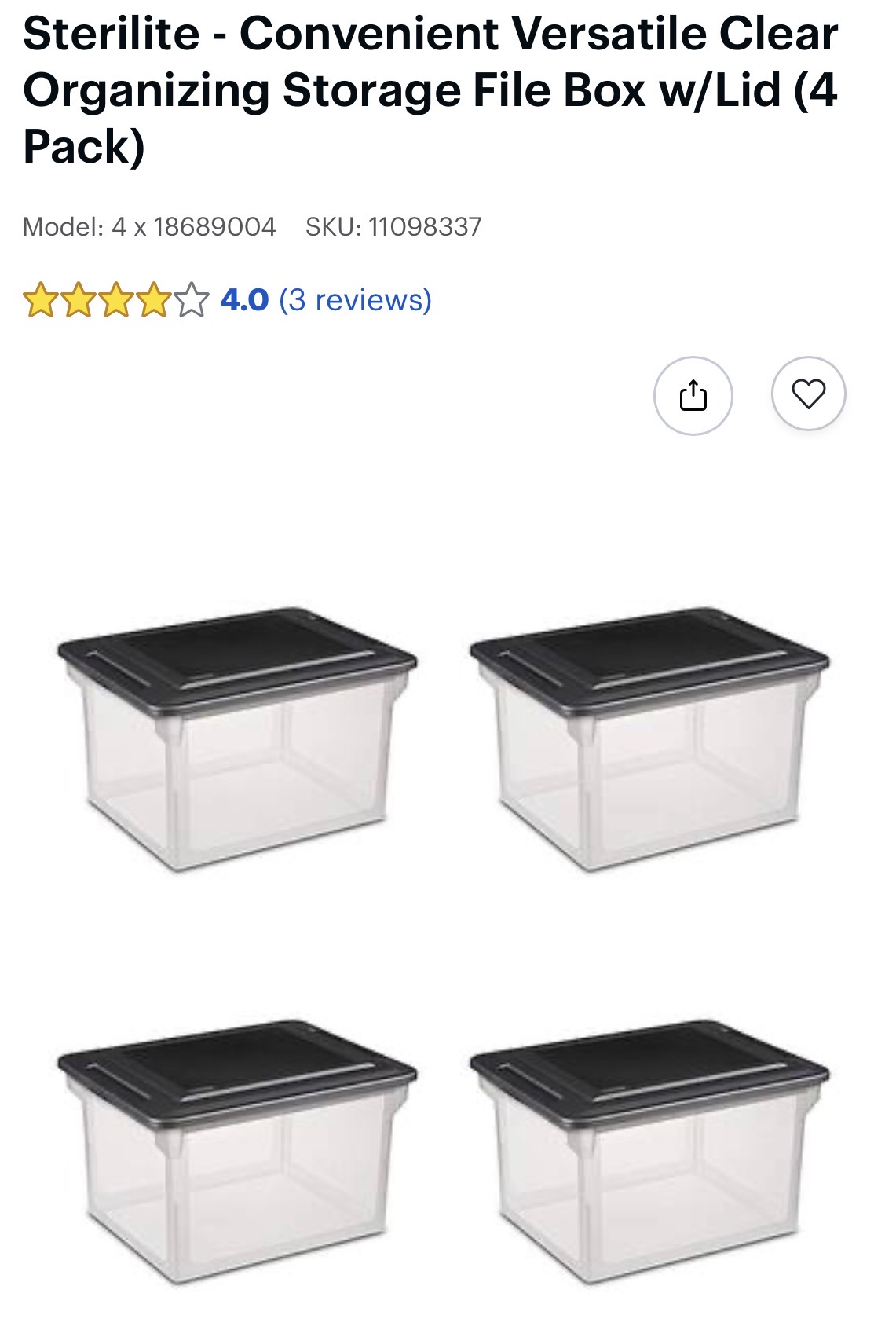 Storage File Box w/Lid (4 Pack) #D190