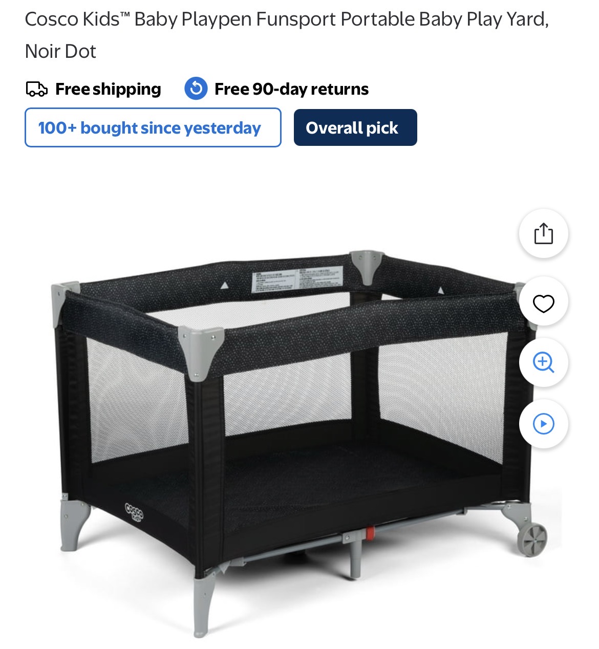 Cosco Kids™ Baby Playpen Funsport Portable Baby Play Yard, Noir Dot #D193