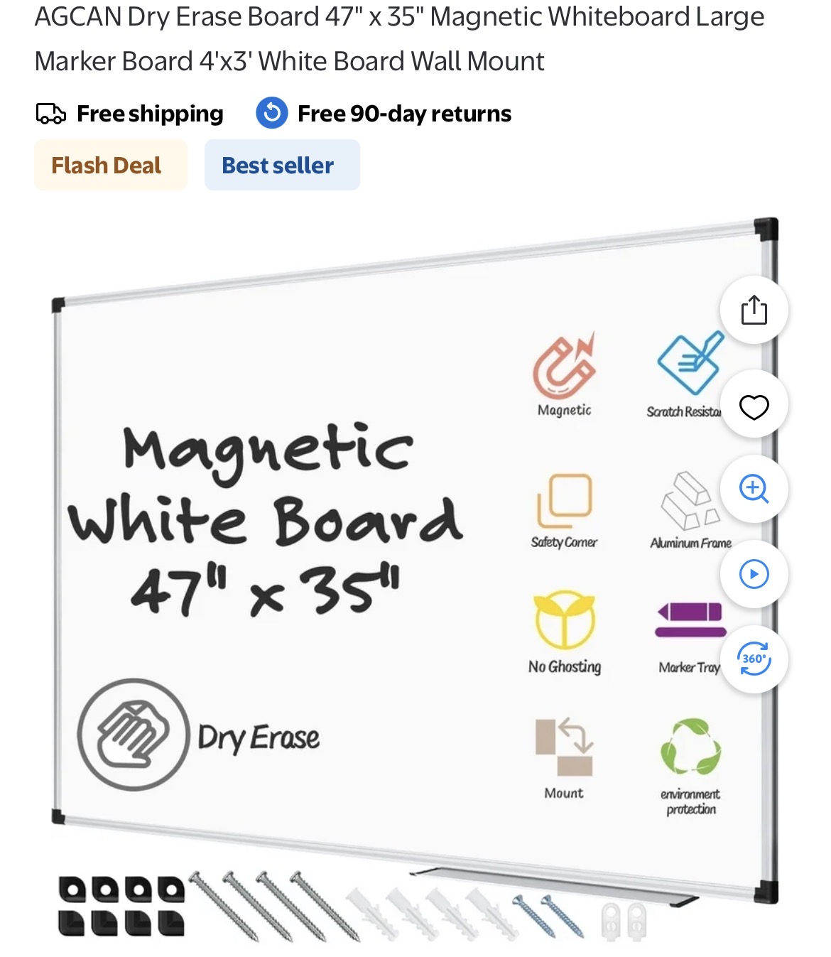 AGCAN Dry Erase Board 47" x 35" Magnetic Whiteboard Large #D199
