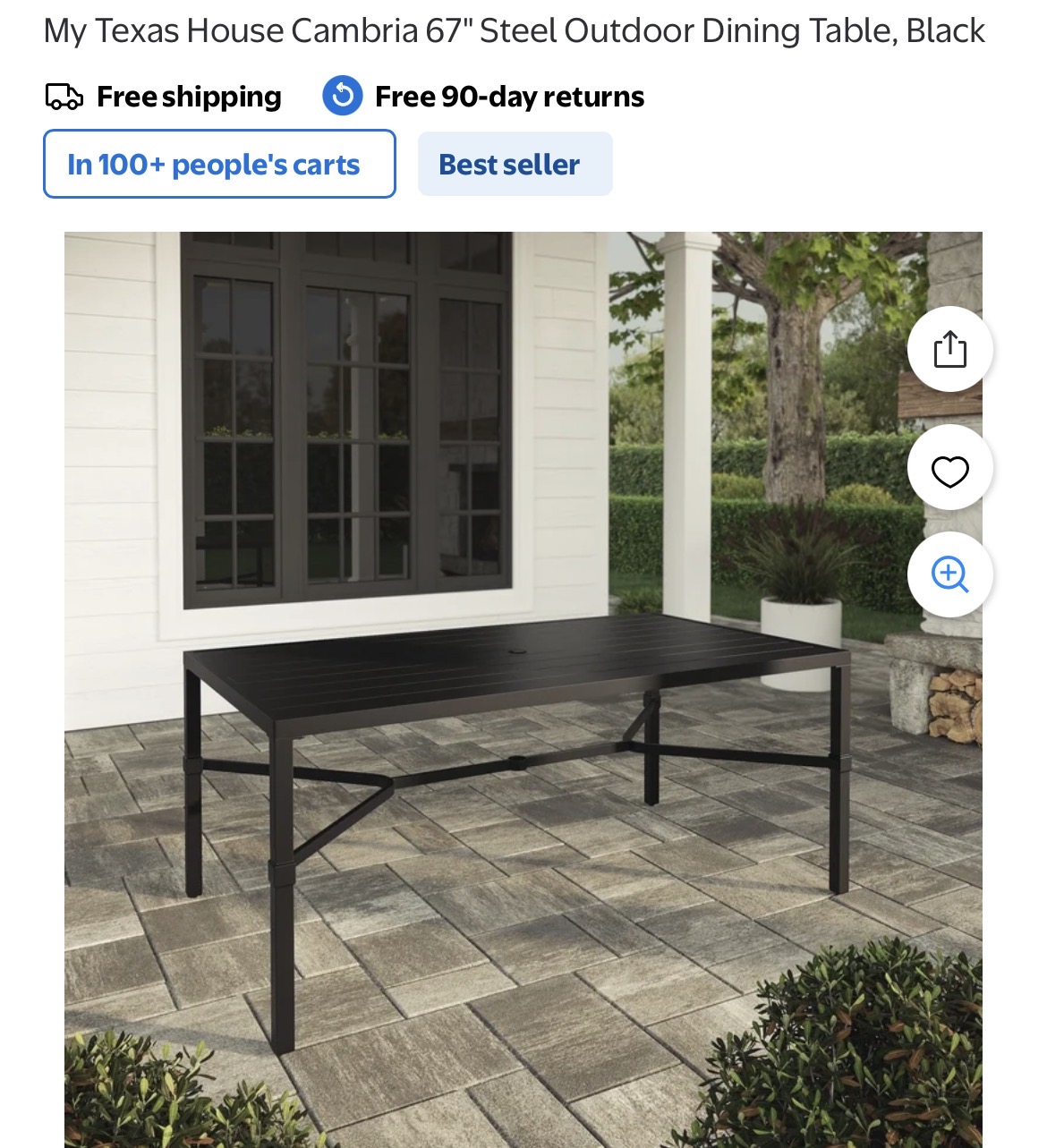 My Texas House Cambria 67" Steel Outdoor Dining Table #D201
