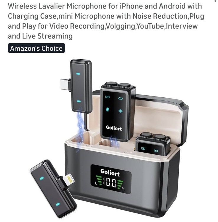 Wireless Lavalier Microphone for iPhone and Android with Charging Case #A45