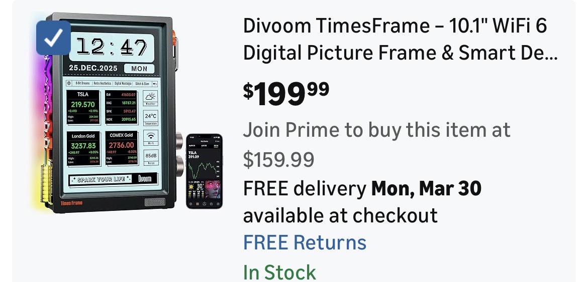 Divoom TimesFrame – 10.1" WiFi 6 Digital Picture Frame & Smart Desk Display #A52