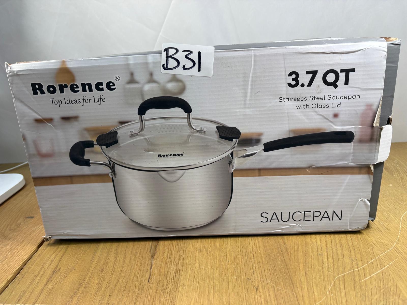 Rorence 3.7 Quart Saucepan with Glass Lid #B31