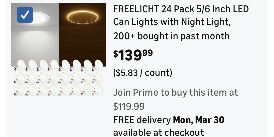 FREELICHT 24 Pack 5/6 Inch LED Can Lights with Night Light #B34