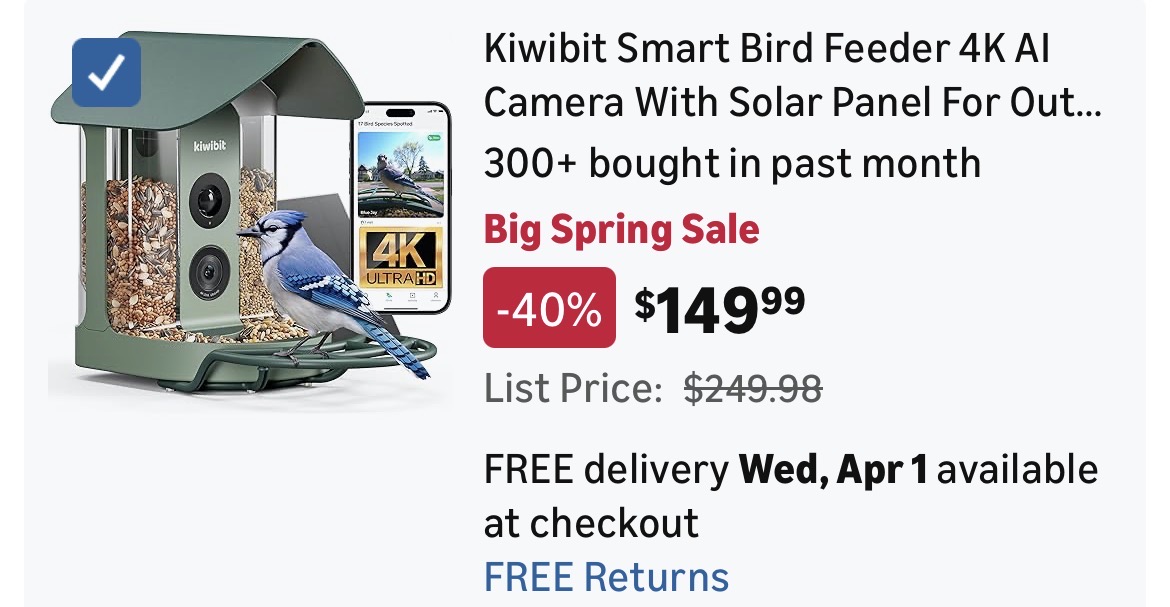Smart Bird Feeder 4K AI Camera With Solar Panel For Outdoors #L8