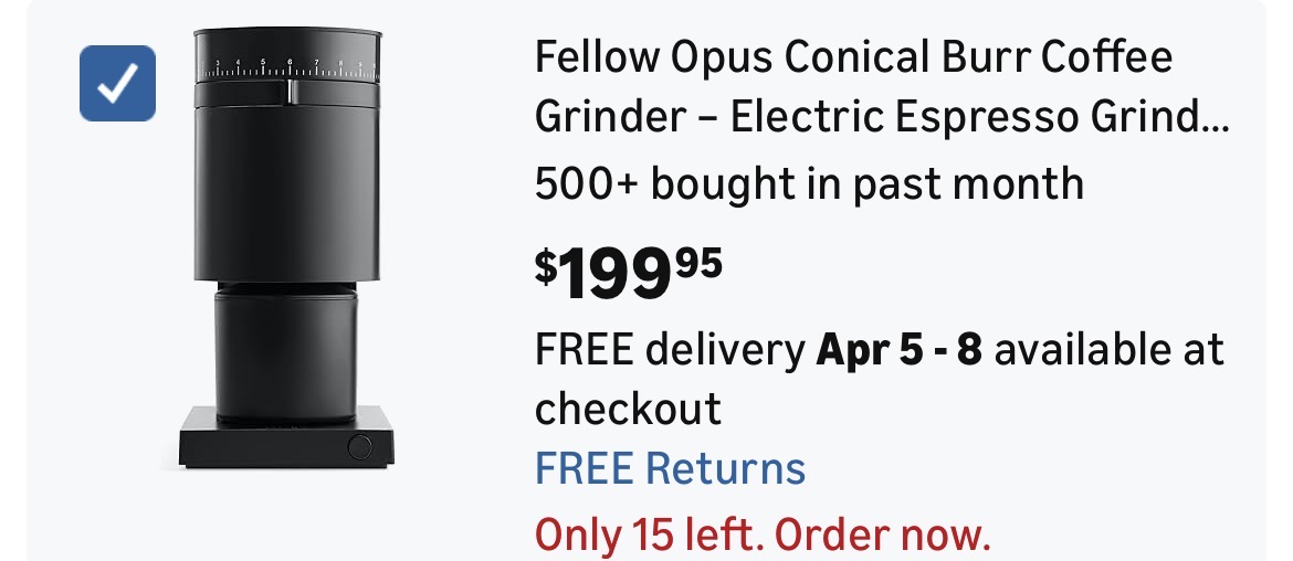 Fellow Opus Conical Burr Coffee Grinder – Electric Espresso Grinder for Home Use #L19