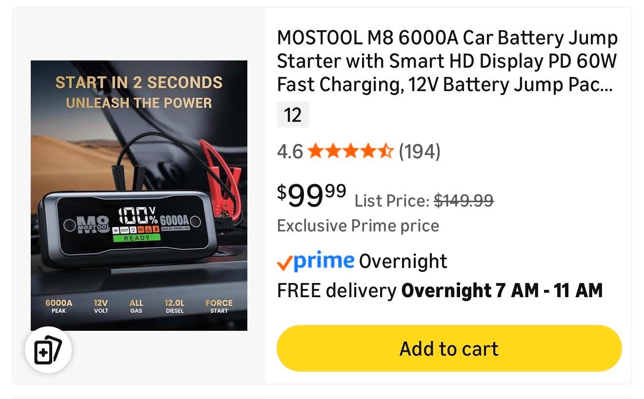 MOSTOOL M8 6000A Car Battery Jump Starter with Smart HD Display PD 60W Fast Charging. 24