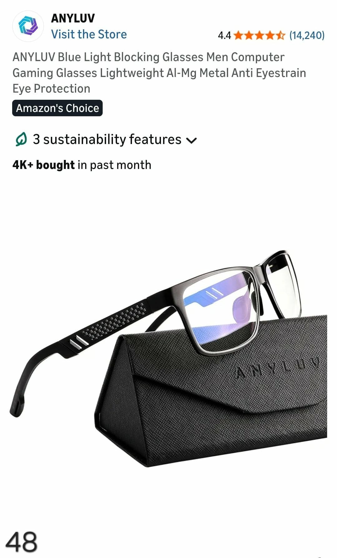 ANYLUV Blue Light Blocking Glasses Men Computer Gaming Glasses Lightweight Al-Mg Metal Anti Eyestrain Eye Protection. Lv48