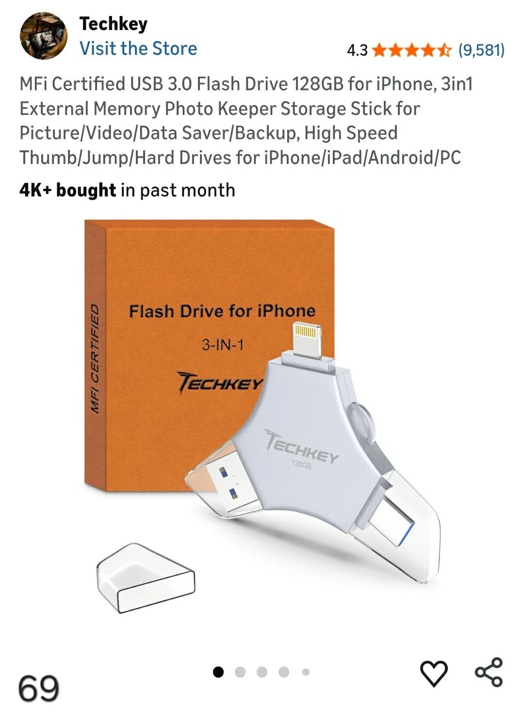 MFi Certified USB 3.0 Flash Drive 128GB for iPhone. Lv69