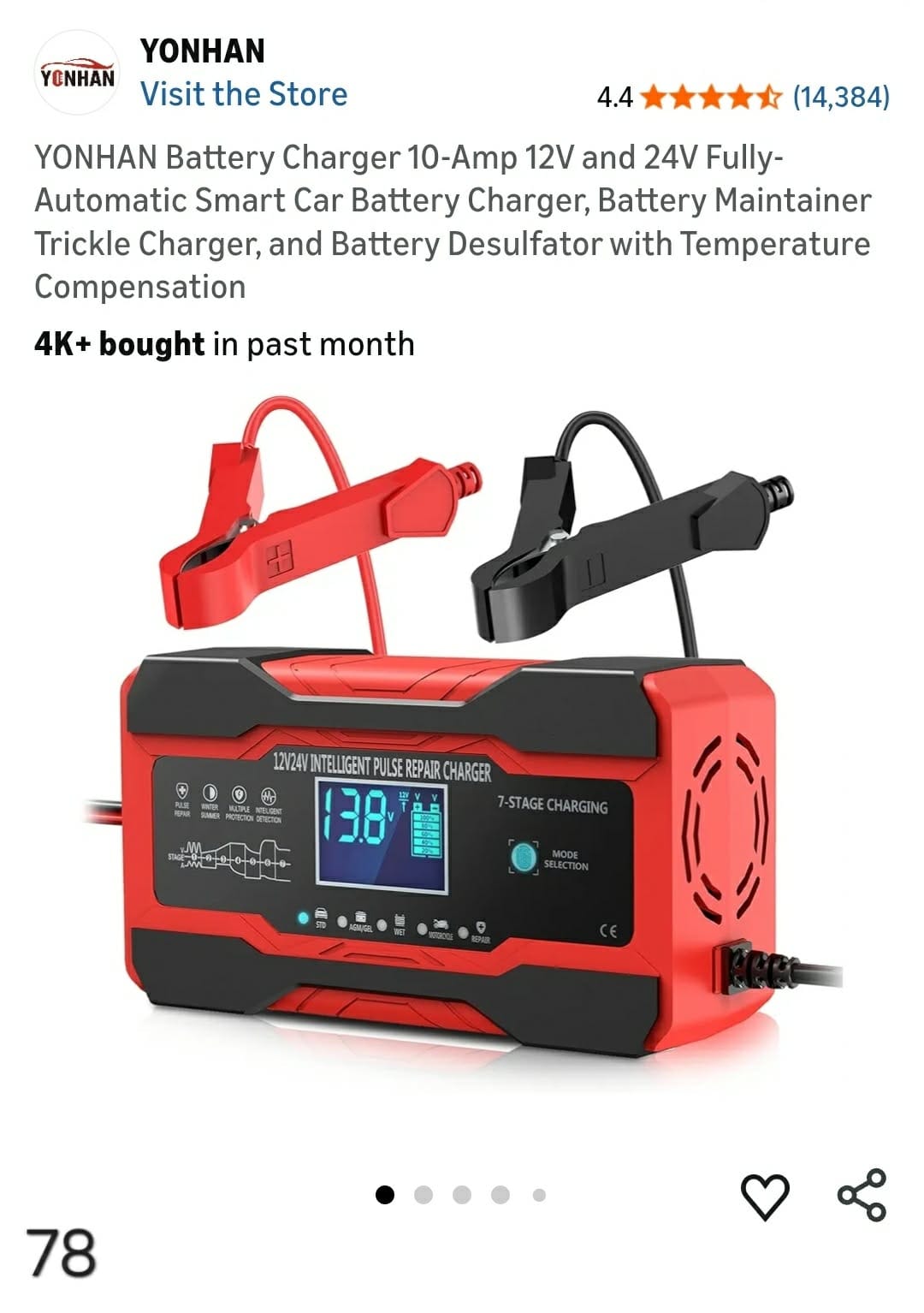 YONHAN Battery Charger 10-Amp 12V and 24V Fully-Automatic Smart Car Battery Charger. Lv78