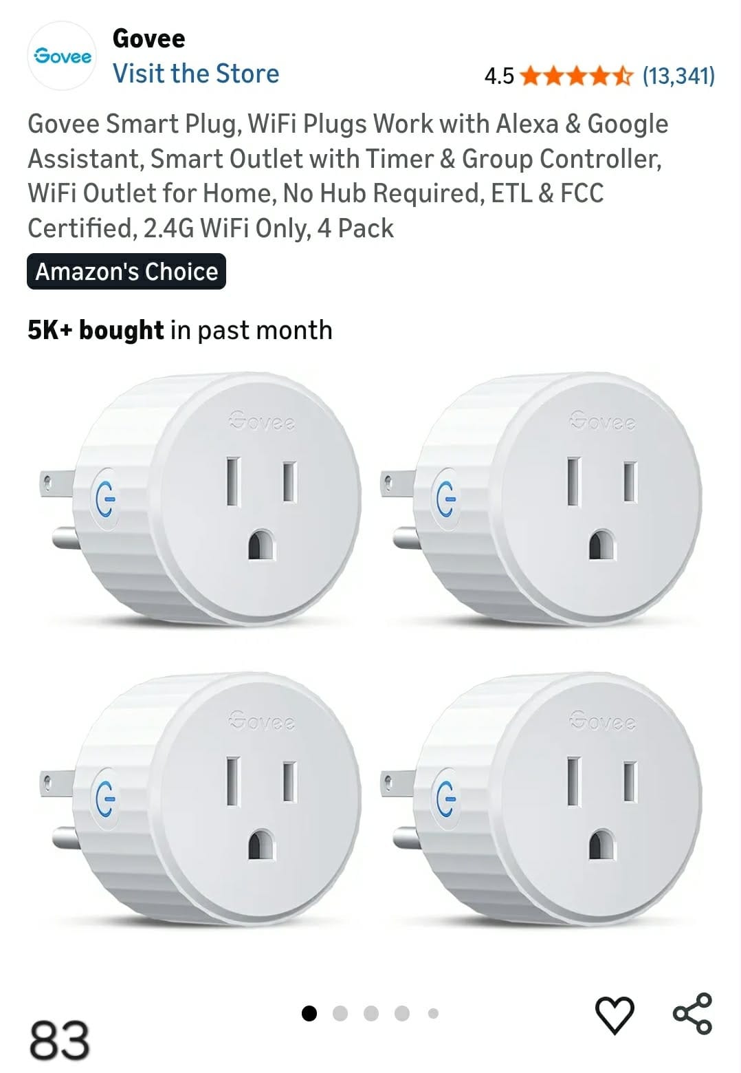 Govee Smart Plug, WiFi Plugs Work with Alexa & Google Assistant. Lv83