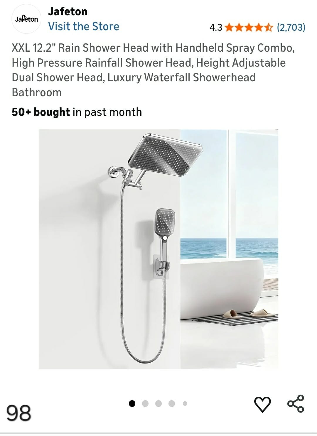 XXL 12.2" Rain Shower Head with Handheld Spray Combo. Lv98
