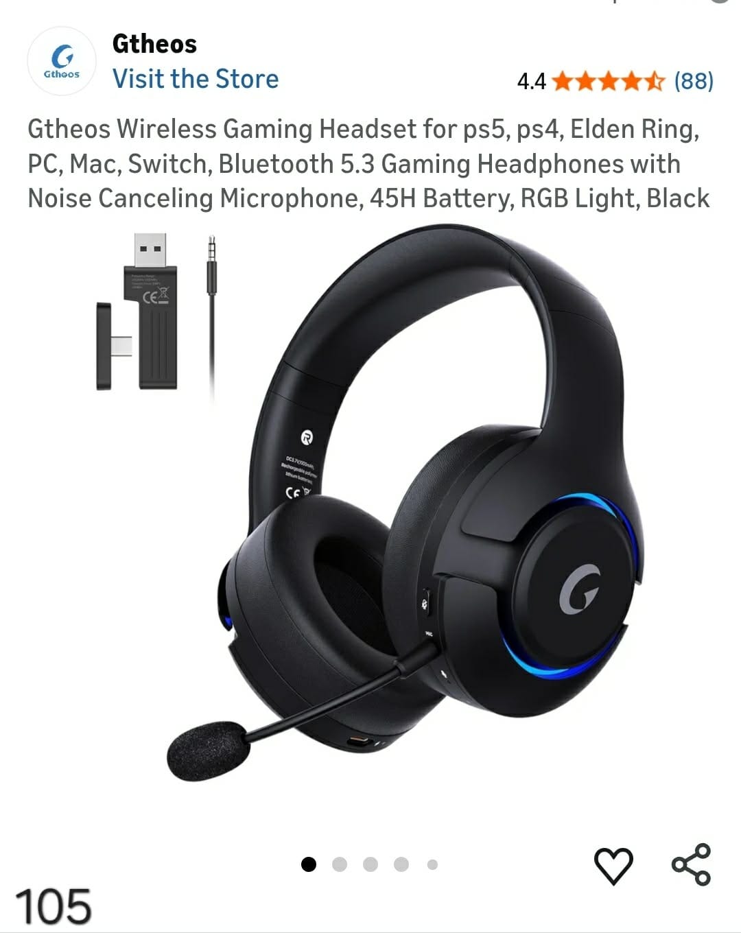 Gtheos Wireless Gaming Headset for ps5, ps4, Elden Ring, PC, Mac, Switch. Lv105