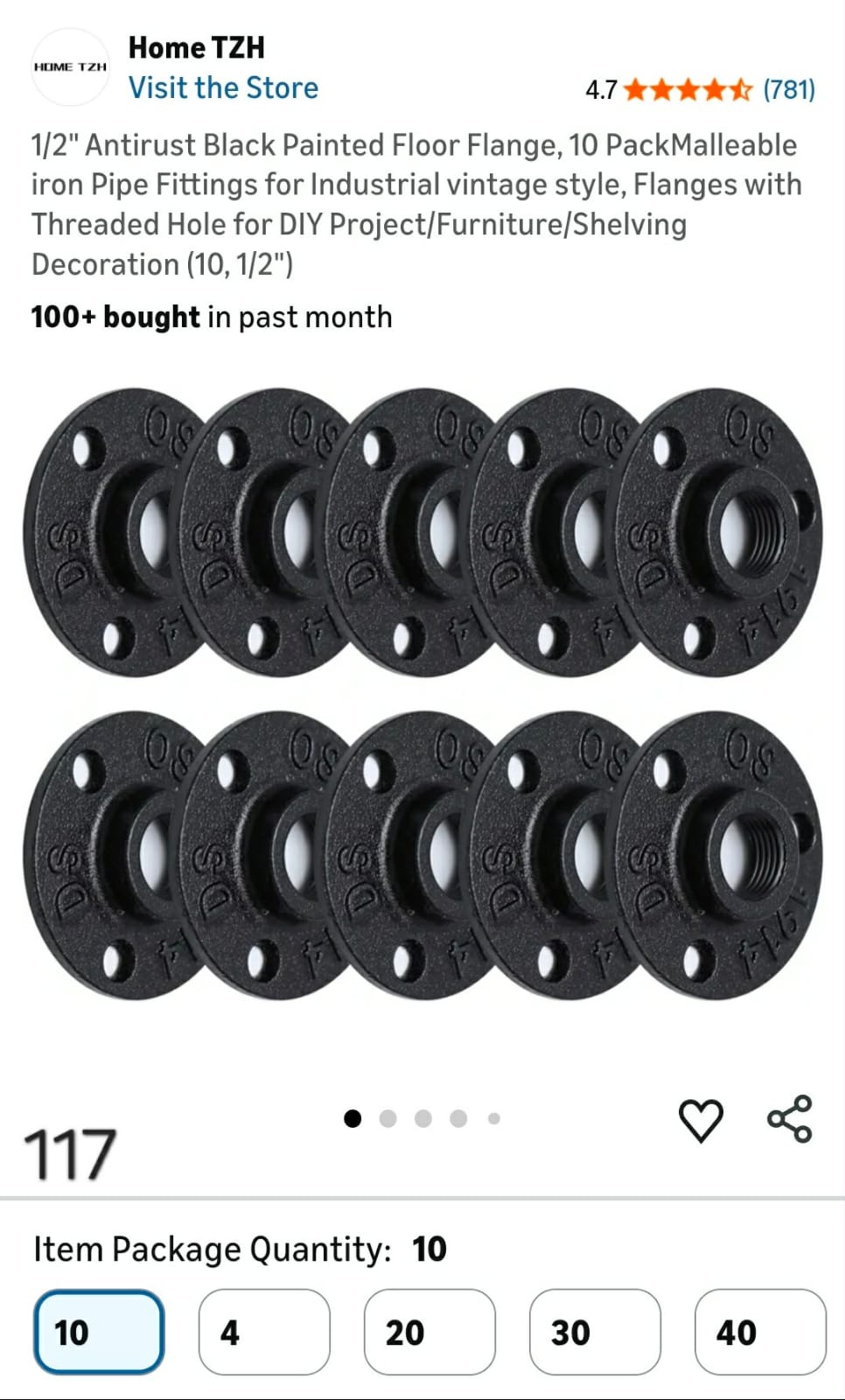 1/2" Antirust Black Painted Floor Flange, 10 PackMalleable iron Pipe Fittings for Industrial vintage style. Lv117
