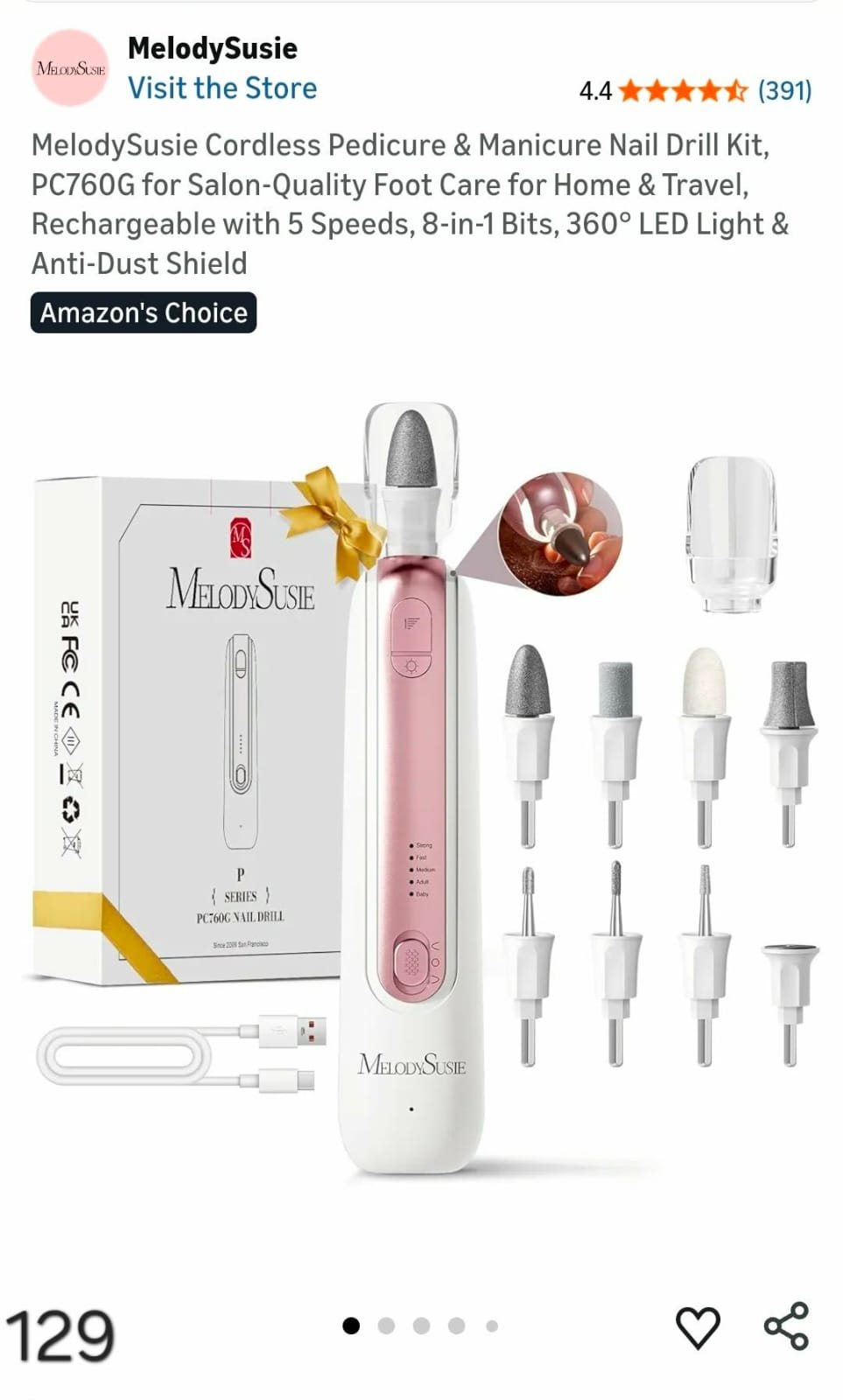 MelodySusie Cordless Pedicure & Manicure Nail Drill Kit. Lv129