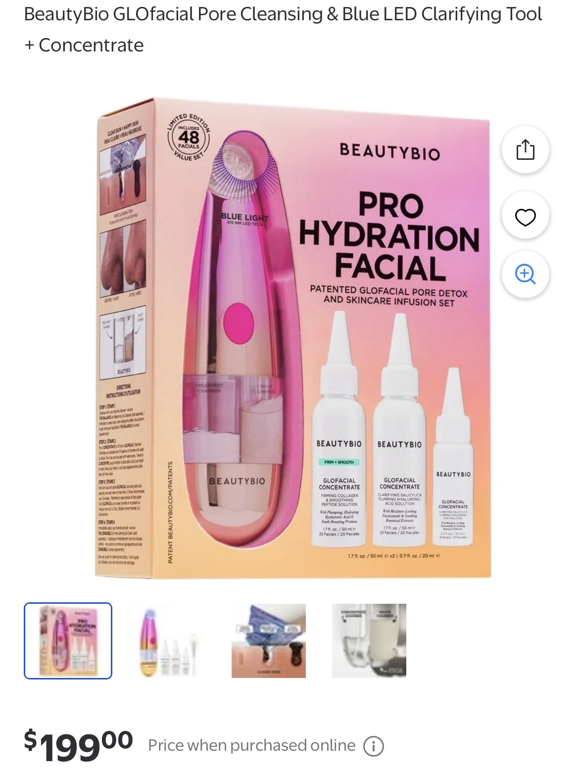 BeautyBio GLOfacial Pore Cleansing & Blue LED Clarifying Tool + Concentrate #C1