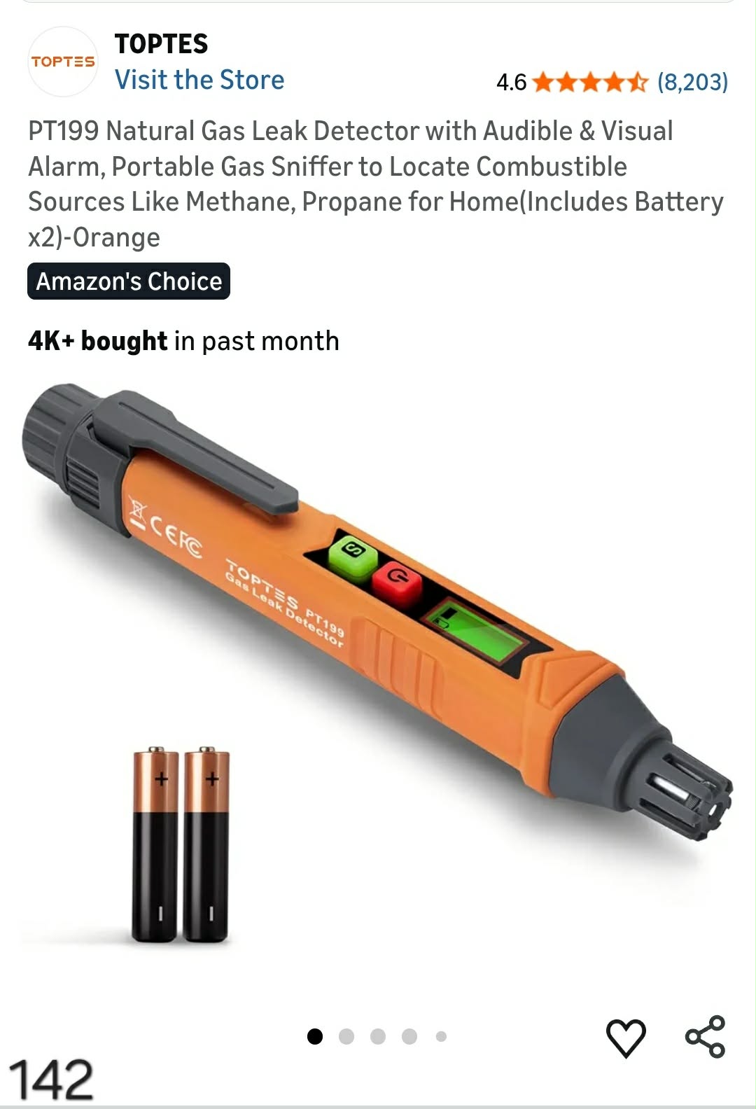 PT199 Natural Gas Leak Detector with Audible & Visual Alarm. Lv142