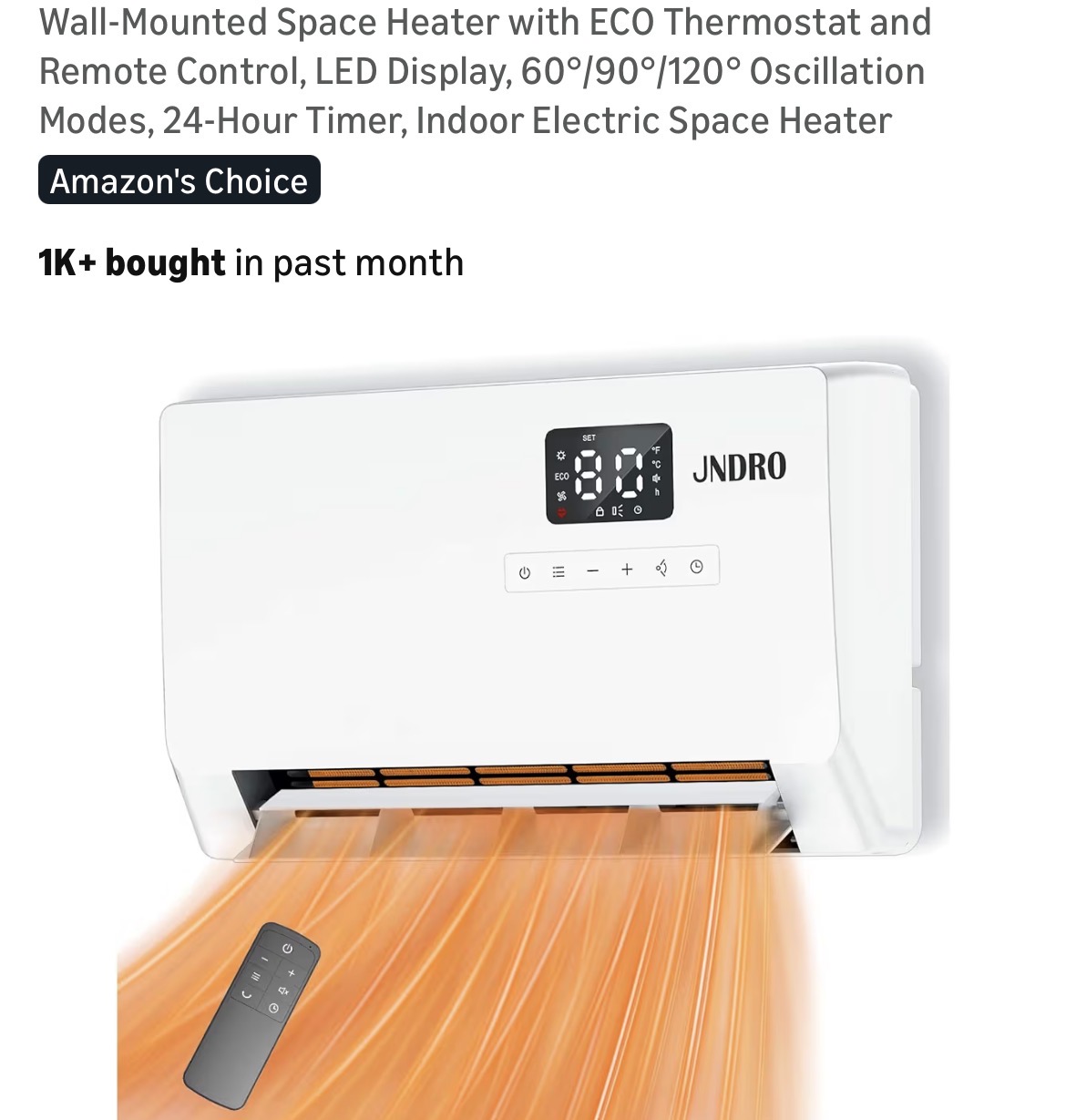 Wall-Mounted Space Heater with ECO Thermostat and Remote Control #C23