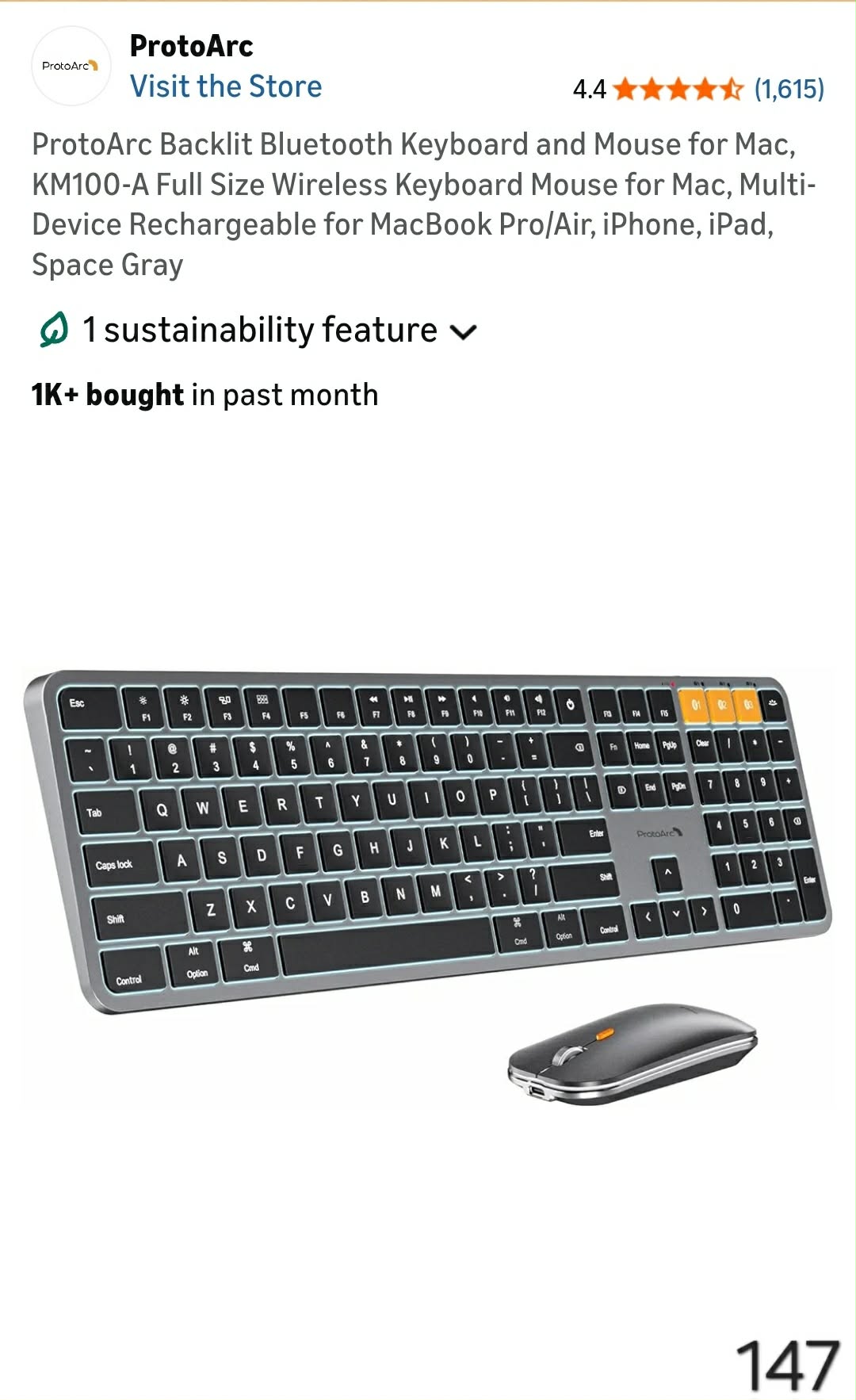 ProtoArc Backlit Bluetooth Keyboard and Mouse for Mac. Lv147