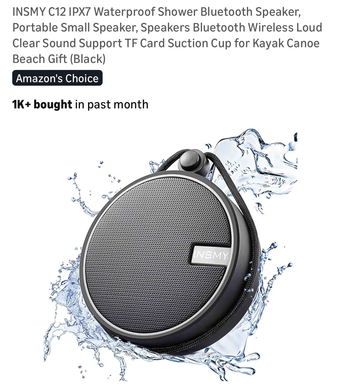 INSMY C12 IPX7 Waterproof Shower Bluetooth Speaker #C48