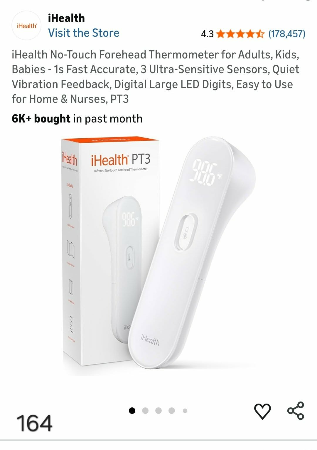 iHealth No-Touch Forehead Thermometer for Adults, Kids, Babies. Lv164
