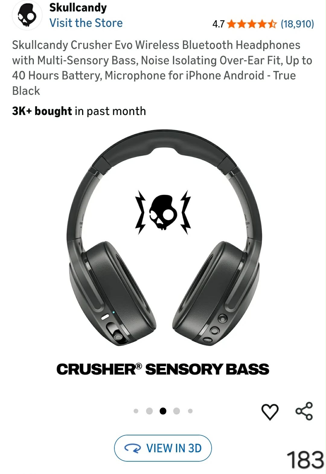 Skullcandy Crusher Evo Wireless Bluetooth Headphones. Lv183